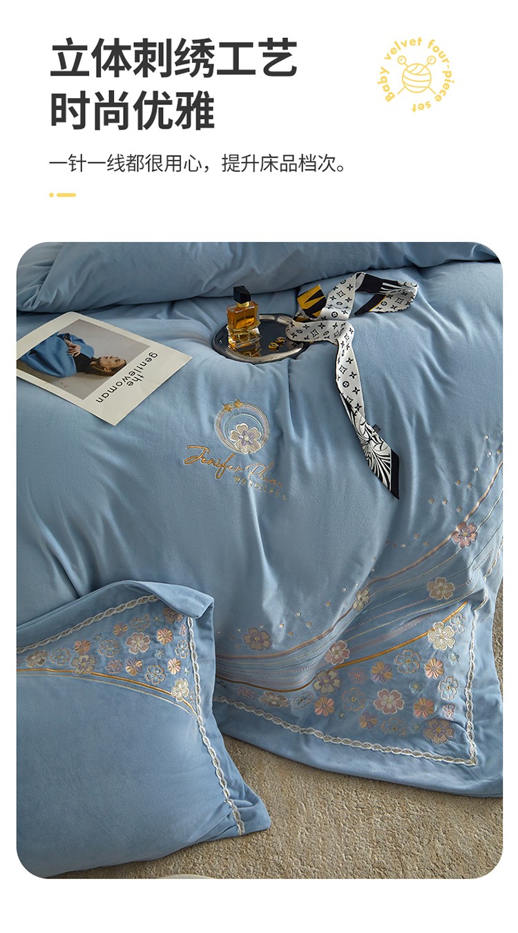 名品优仓2022新款刺绣婴儿绒230克四件套-温柔时光繁星蓝