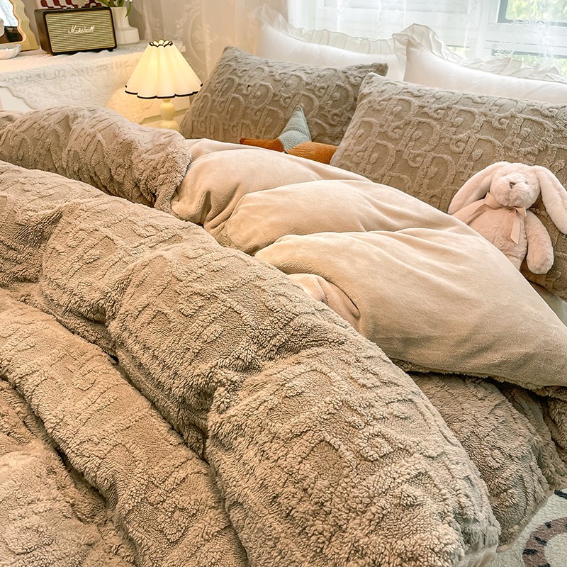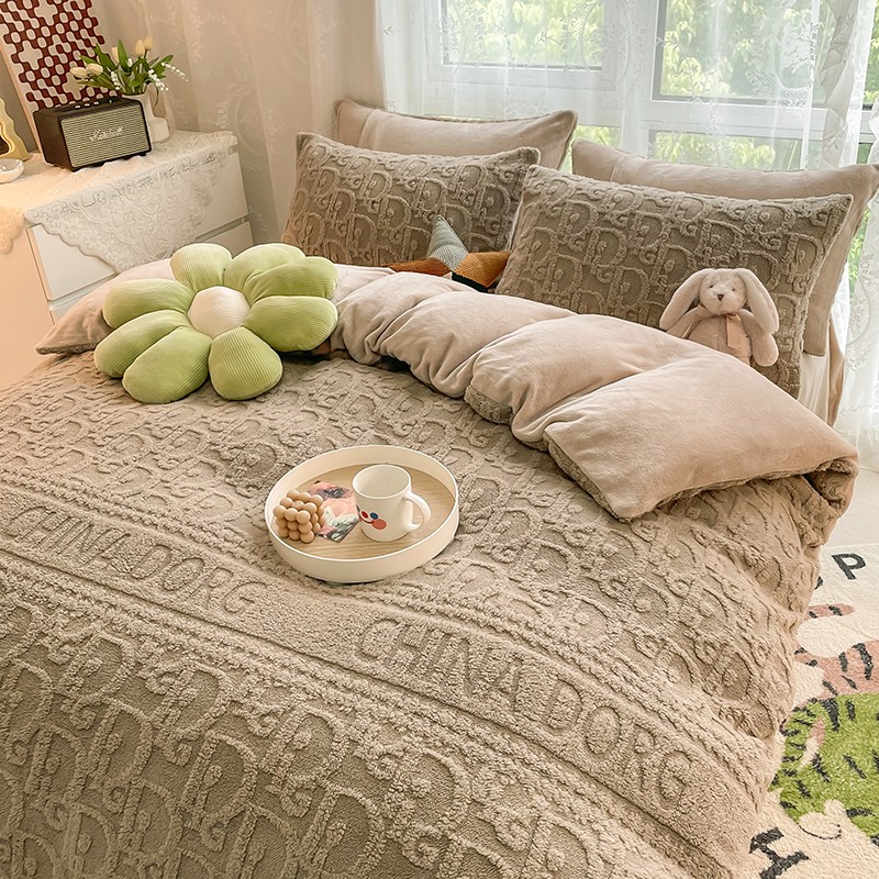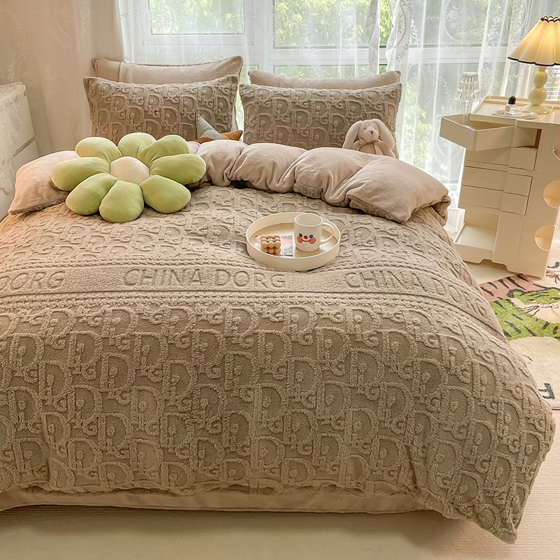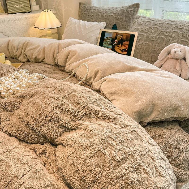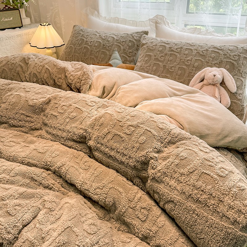 HL原创 2022新款色织提花牛奶绒四件套 提花绒-咖