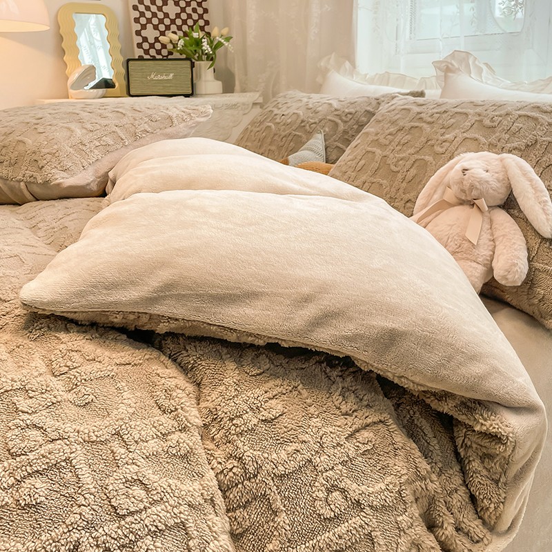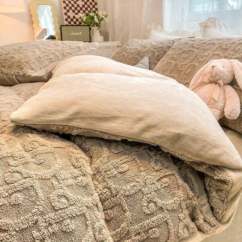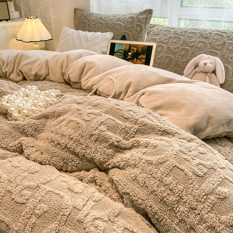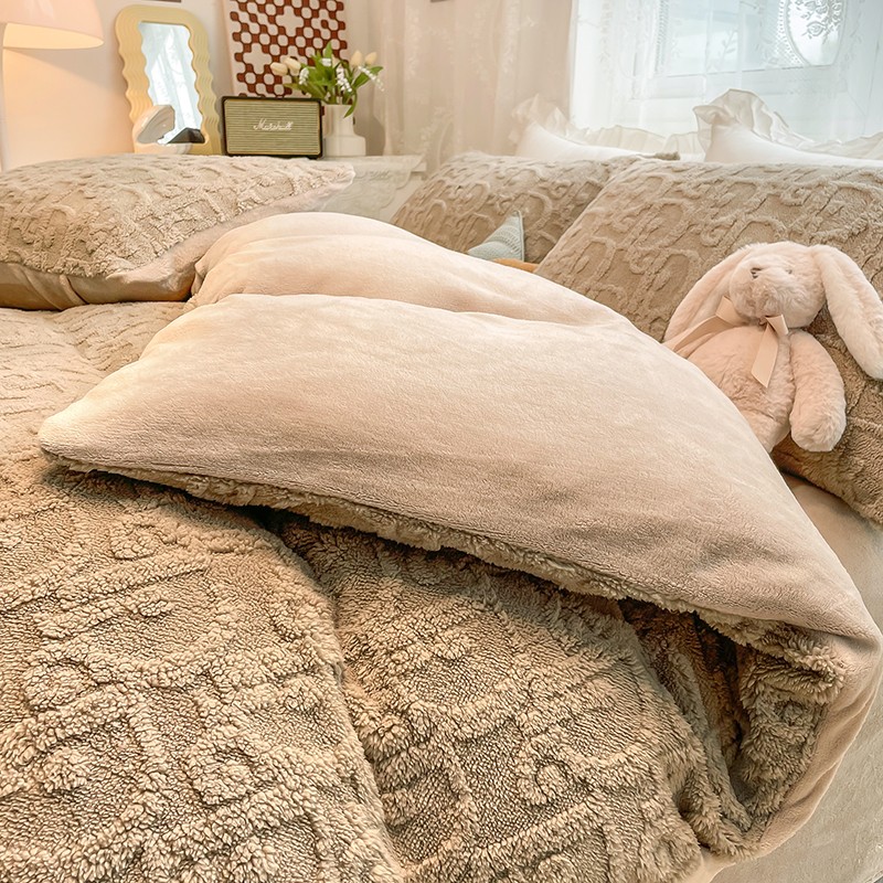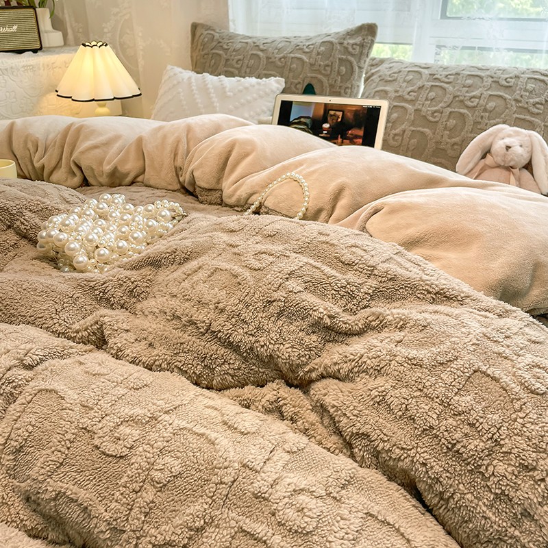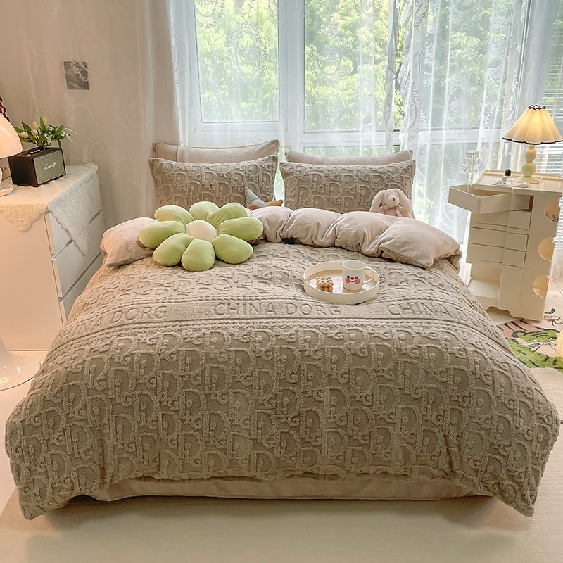 HL原创 2022新款色织提花牛奶绒四件套 提花绒-咖