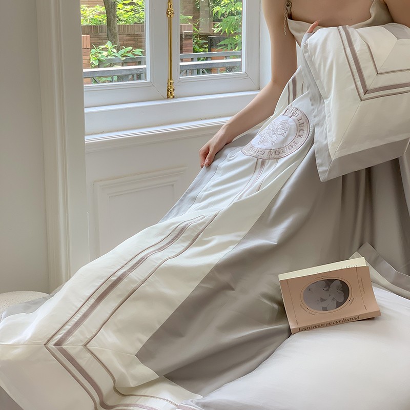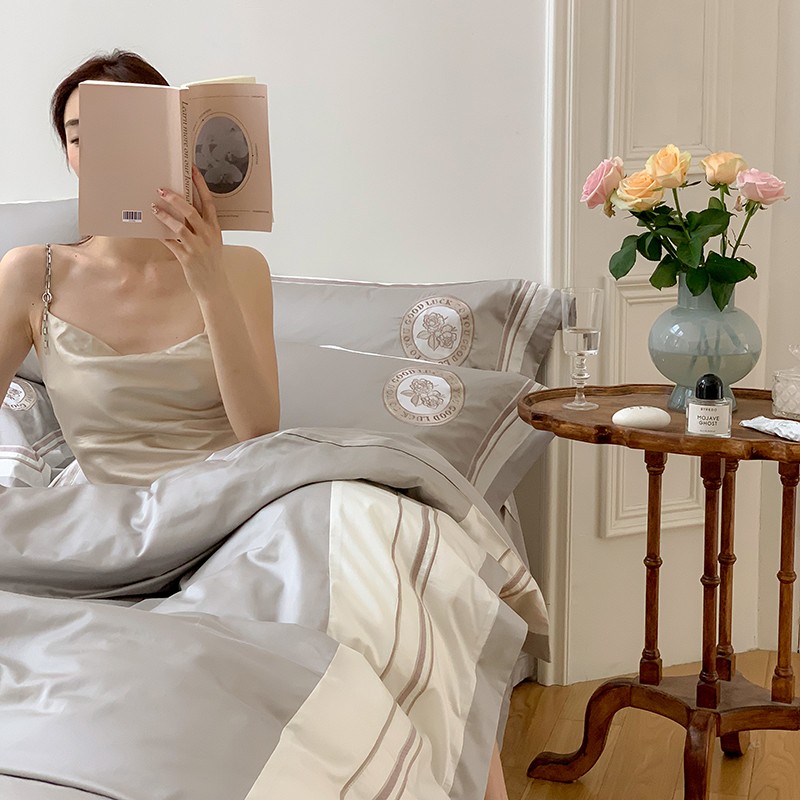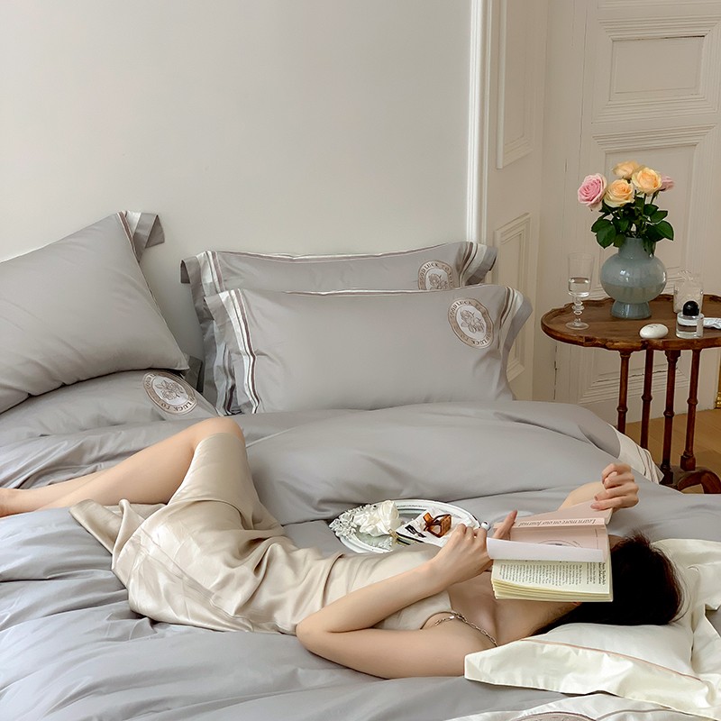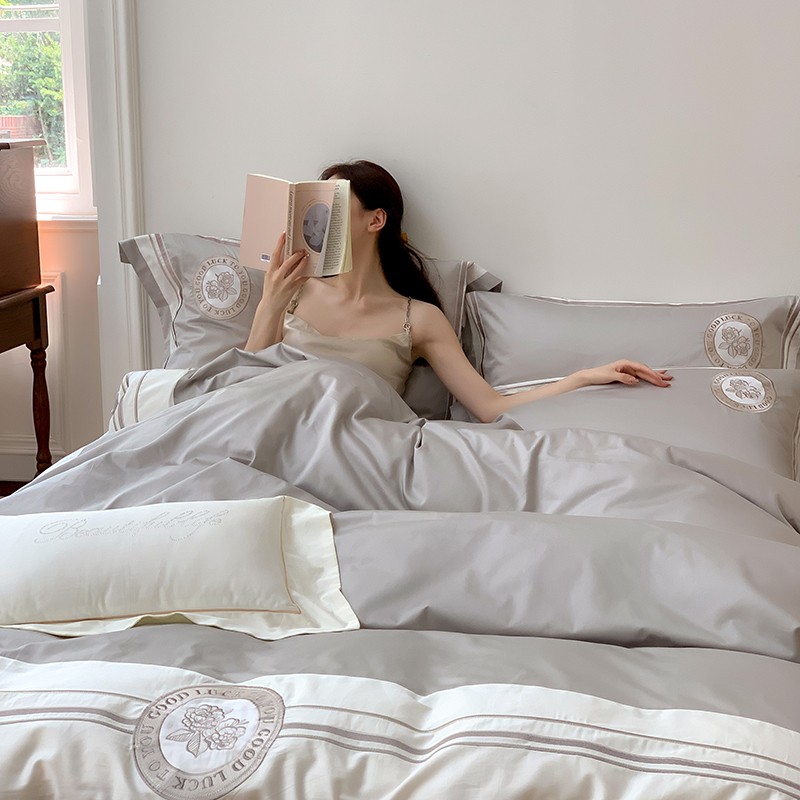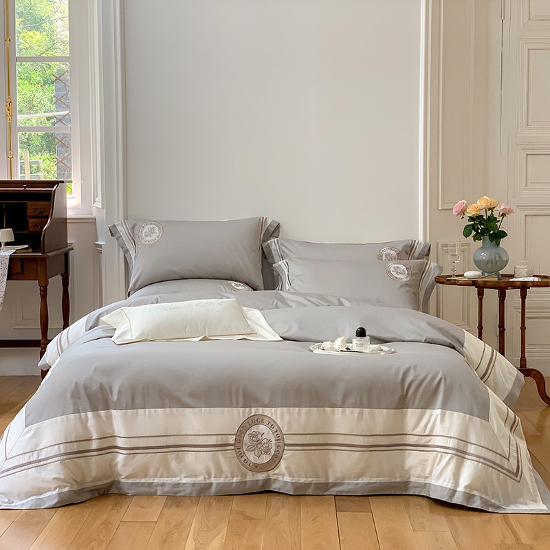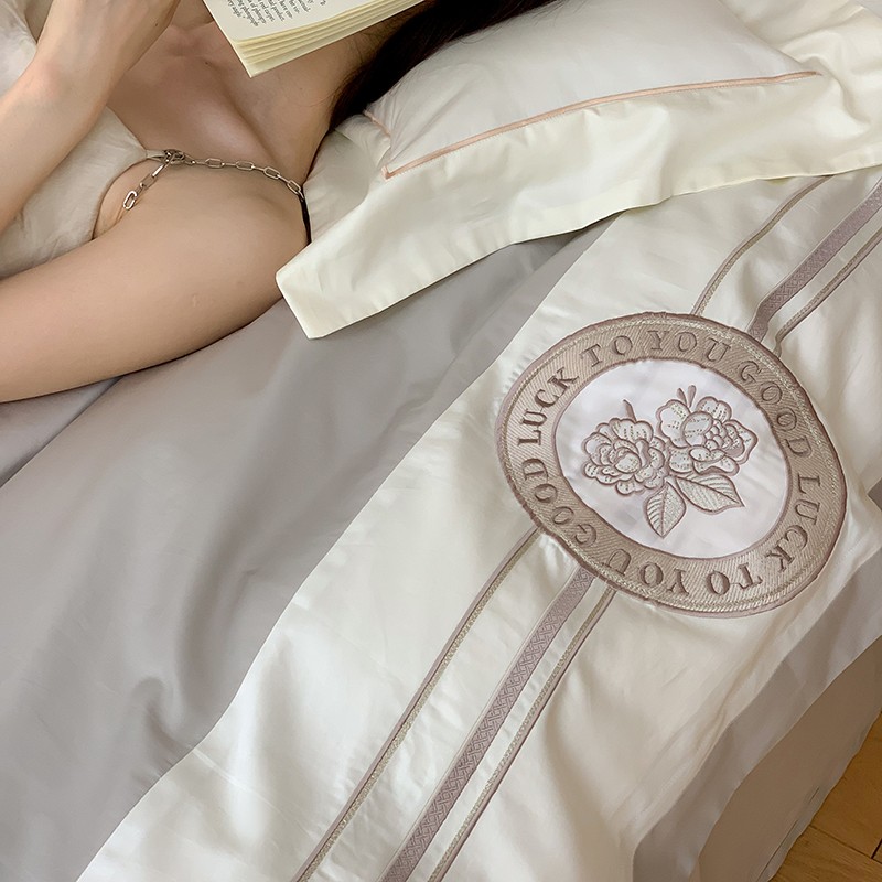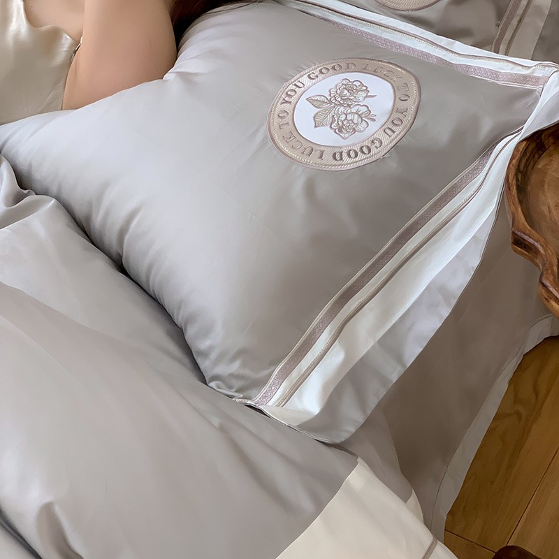 商品名称:馨蕊2022新款秋冬刺绣100支高定系列四件套-山茶花 山茶花-高级灰