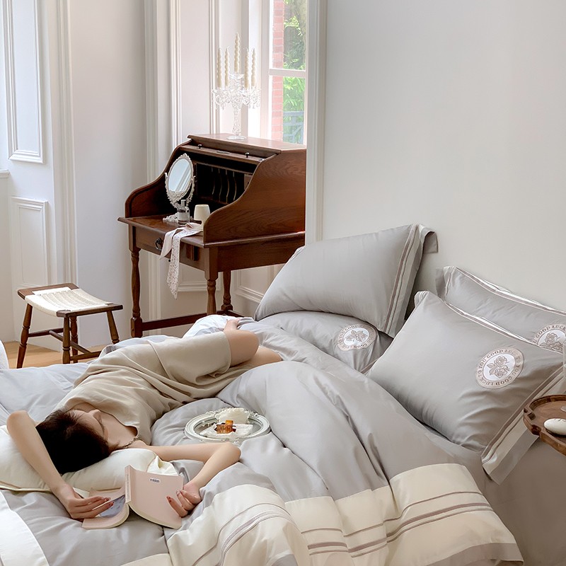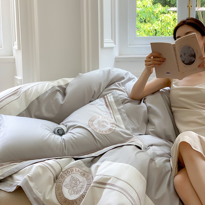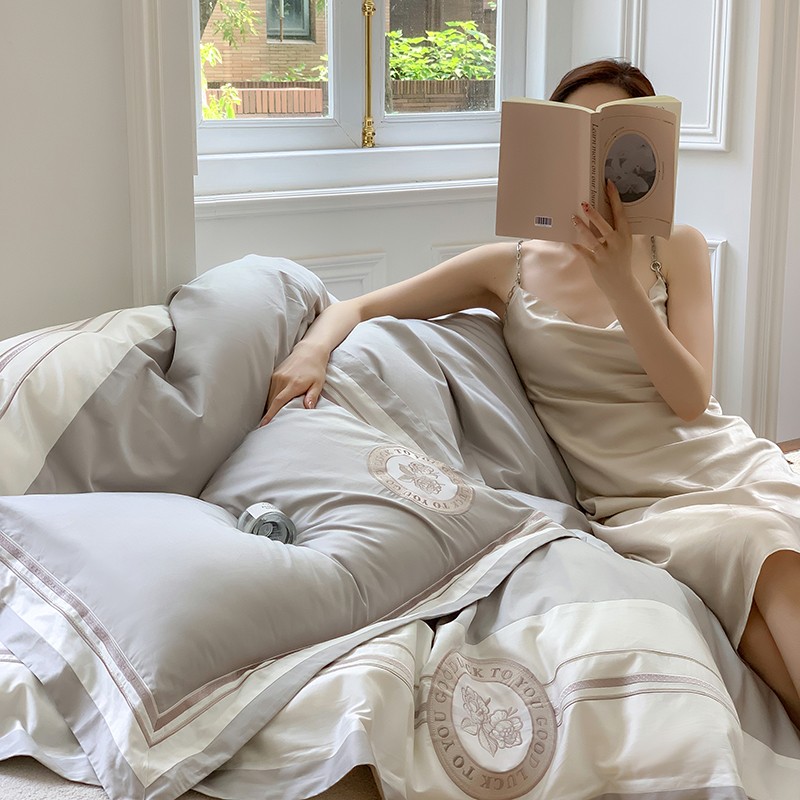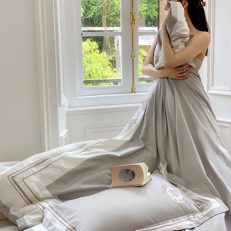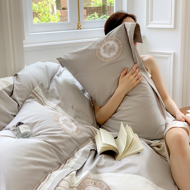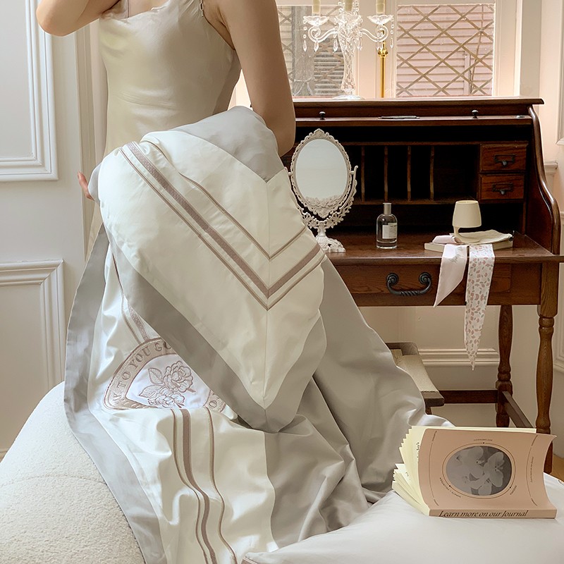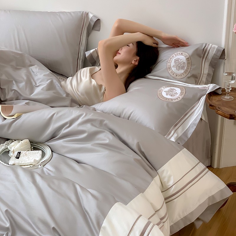 商品名称:馨蕊2022新款秋冬刺绣100支高定系列四件套-山茶花 山茶花-高级灰