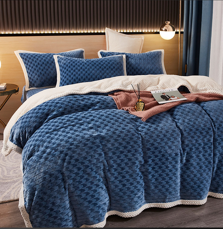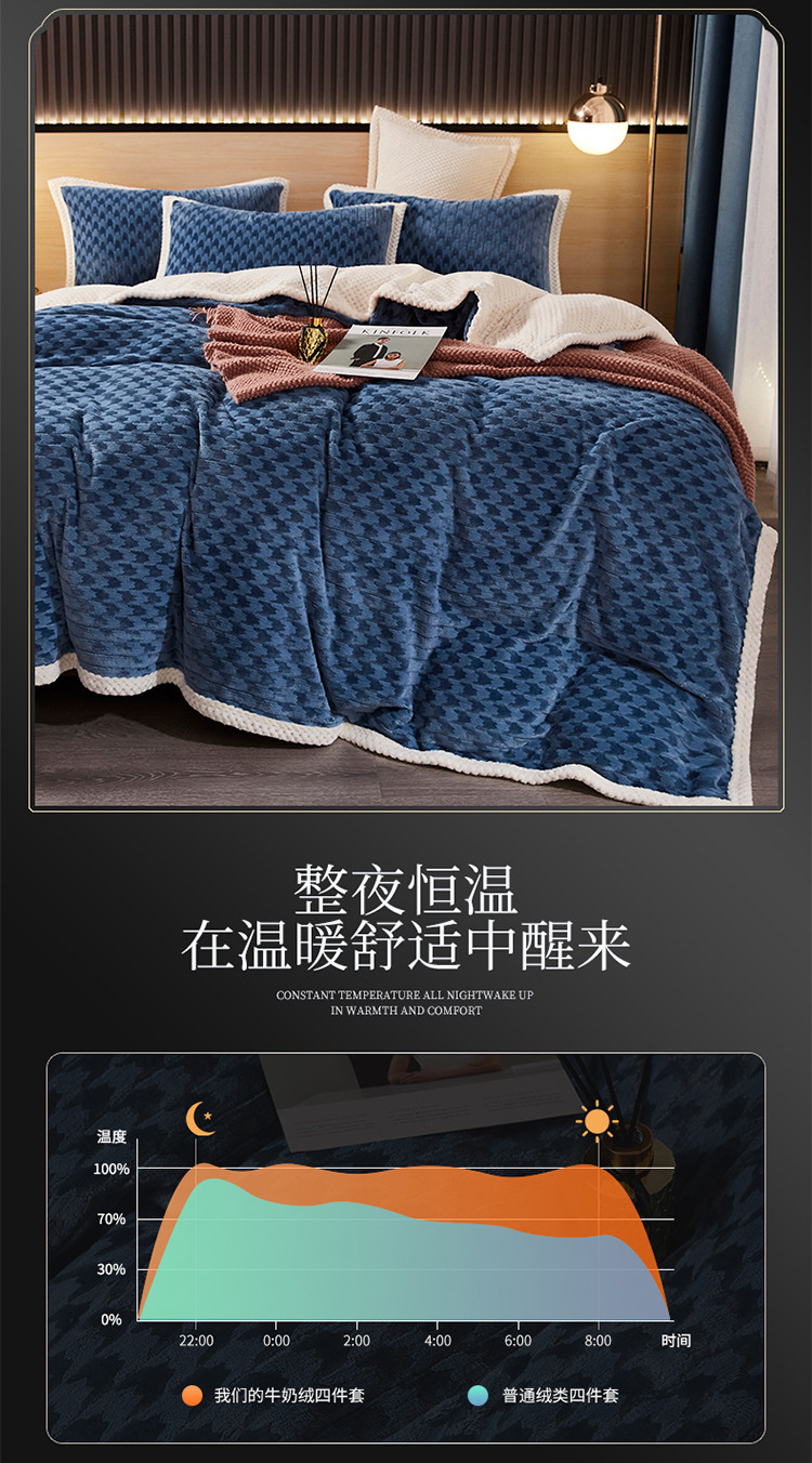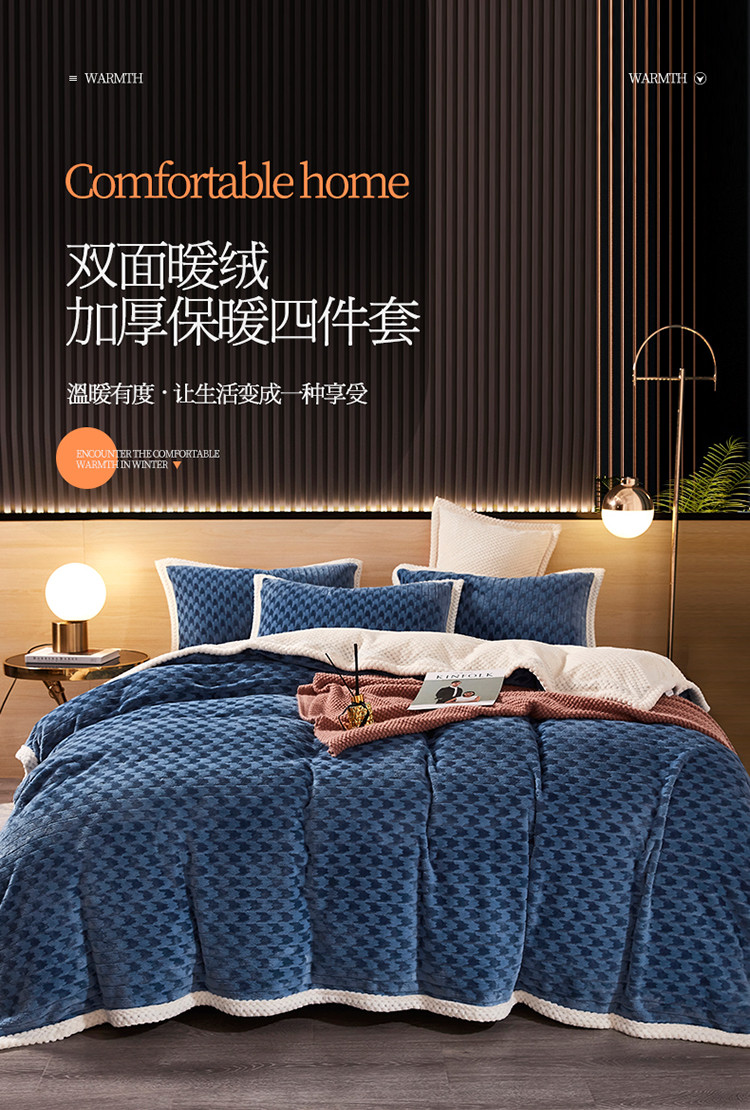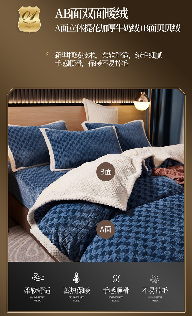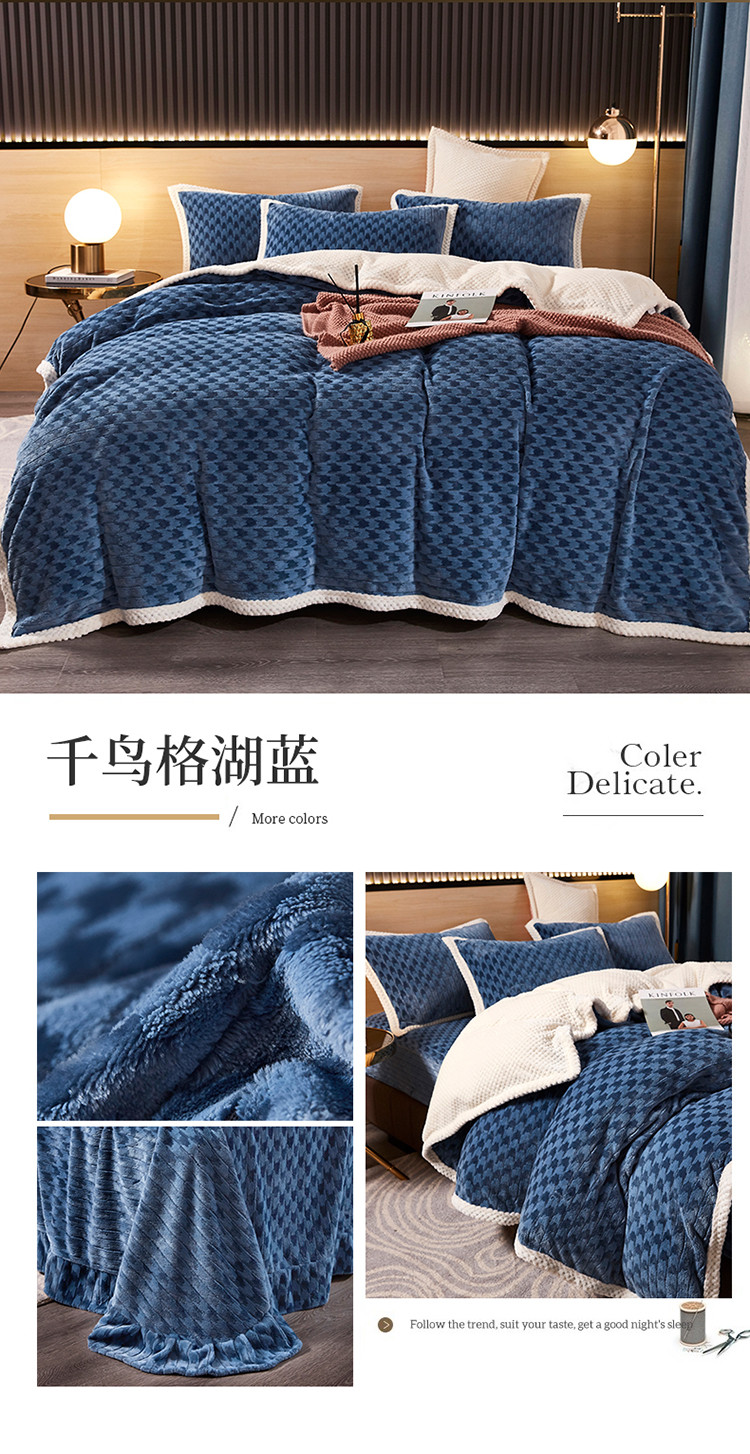 当前位置: 91家纺网 > 商品网购 > 床品套件 > 四件套 > 磨绒四件套 > 席之家 2023新款双面暖绒千鸟格四件套牛奶绒单被套 千鸟格湖蓝