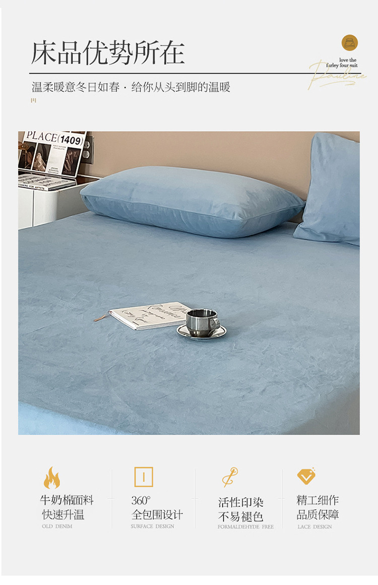 商品名称:法芙娜 A类牛奶棉单层床笠 浅蓝