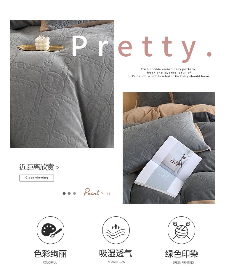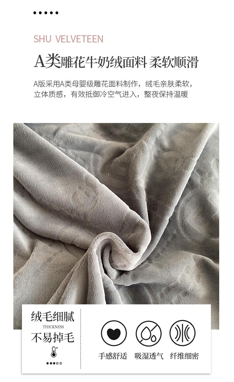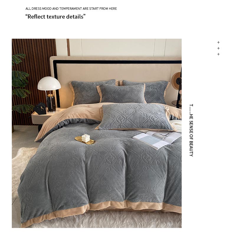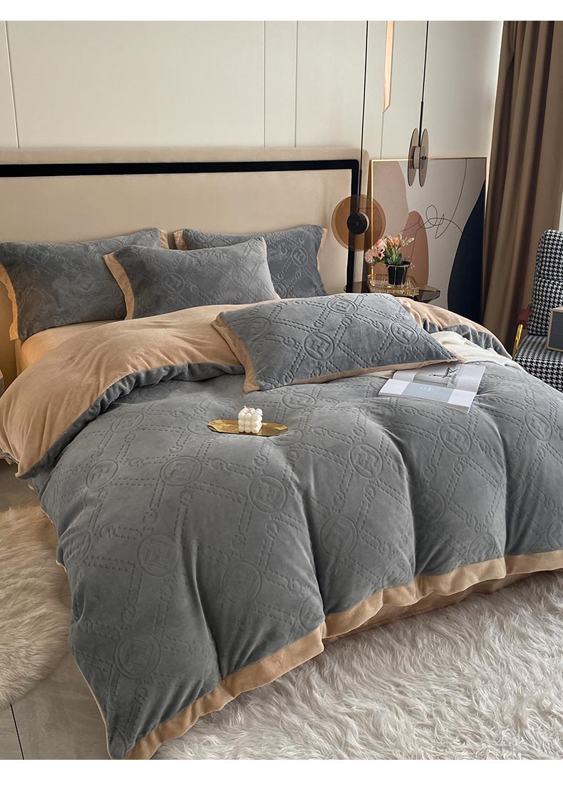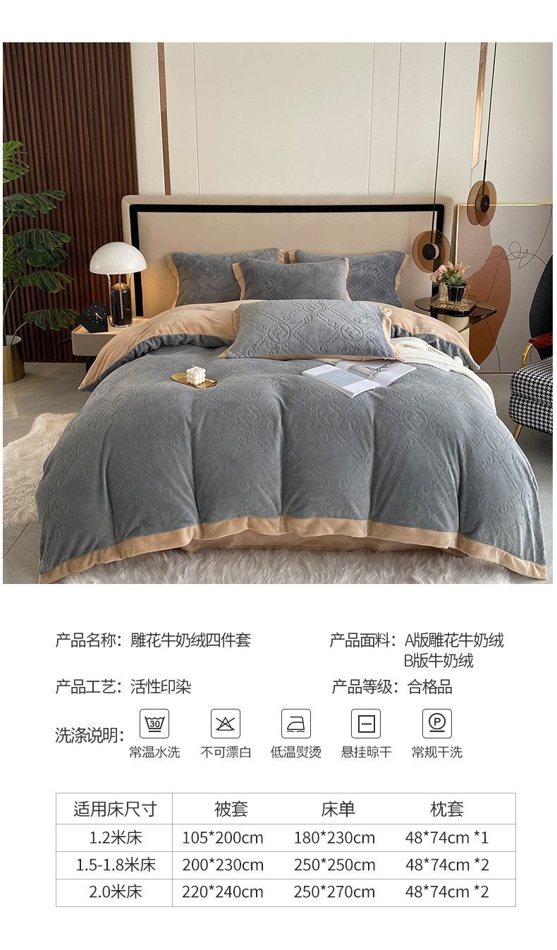 商品名称:铠畅 2022新款230克轻奢简约烂花绒牛奶绒剪花四件套 巴伦-灰