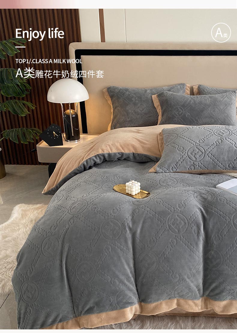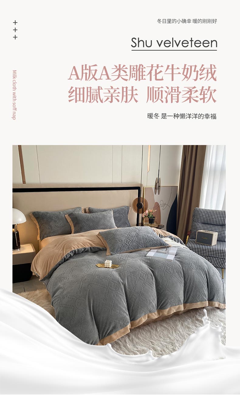 (总)铠畅家纺 2025新款丰眠系列牛奶绒床盖四件套,丰眠-粉玉,丰眠-海藻青,丰眠-灰紫,丰眠-奶油咖,丰眠-雾蓝