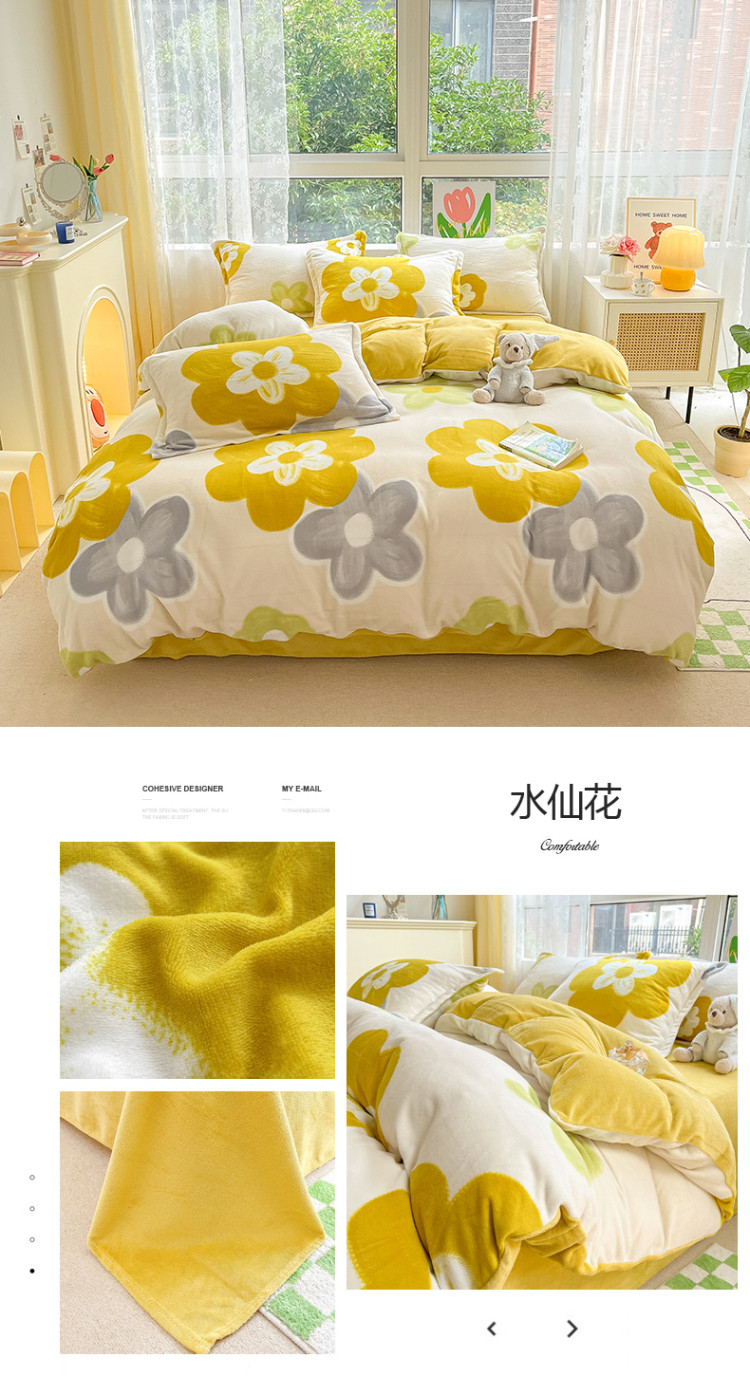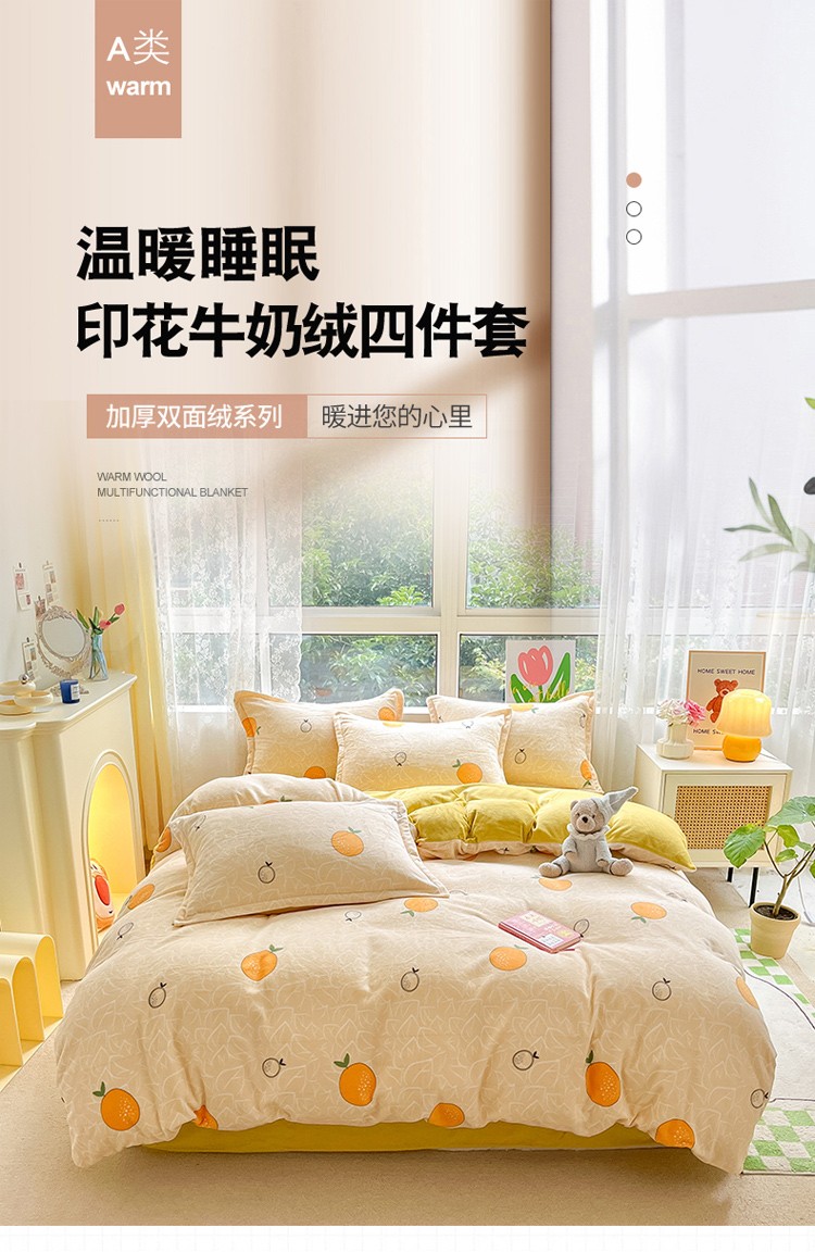 (总)寐居 2022新款印花牛奶绒四件套高克重法莱水晶宝宝