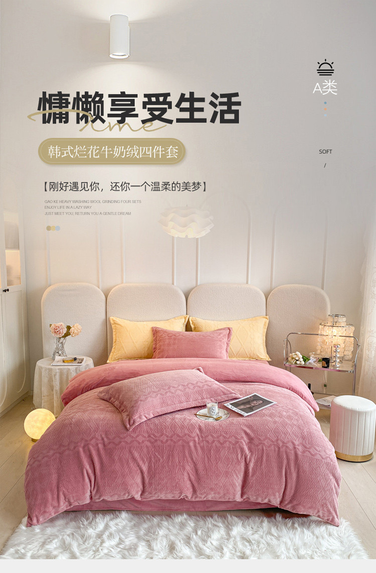 当前位置: 91家纺网 > 商品网购 > 床品套件 > 四件套 > 牛奶绒四件套 > 寐居 2022新款高克重烂花牛奶绒四件套 韩式烂花-豆沙