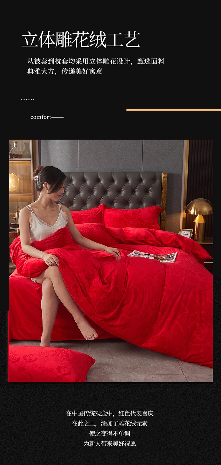 商品名称:2025新款婚庆雕花绒四件套 锦上添花