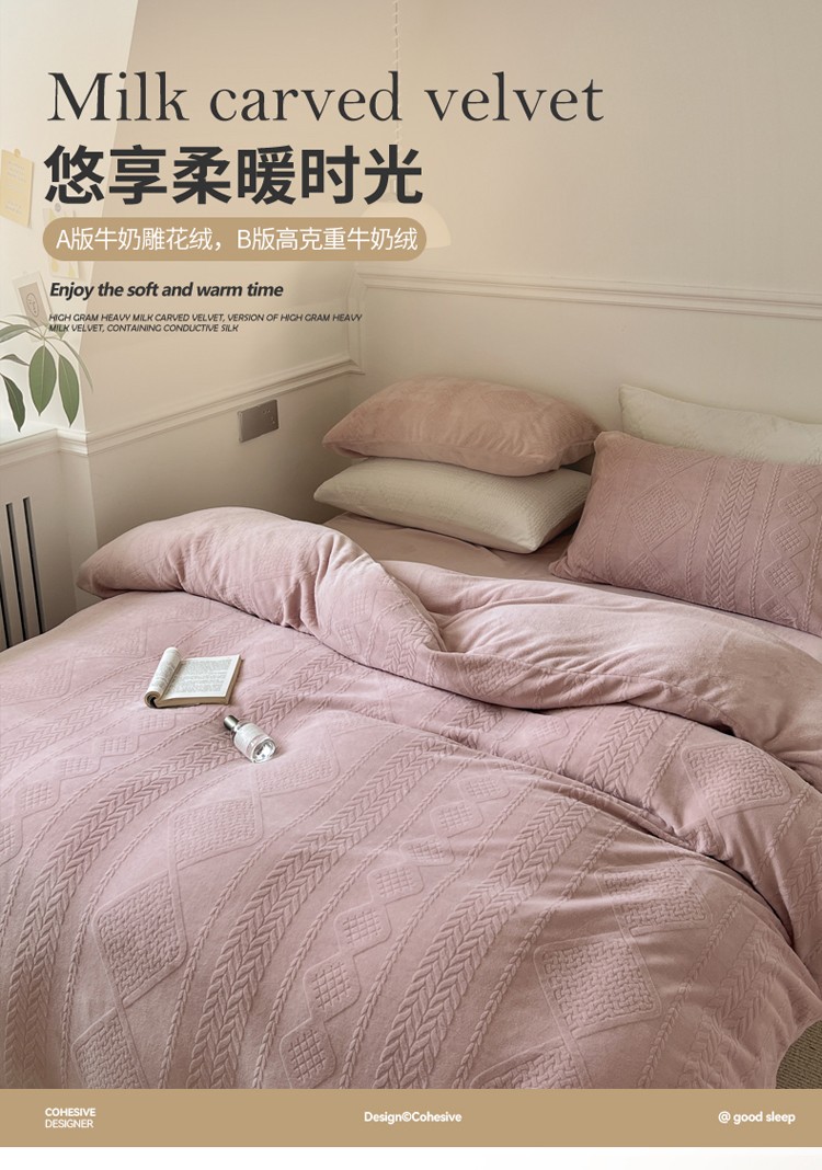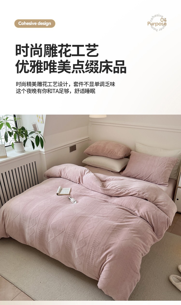 总怡家居2022新款雕花绒高克重牛奶绒四件套