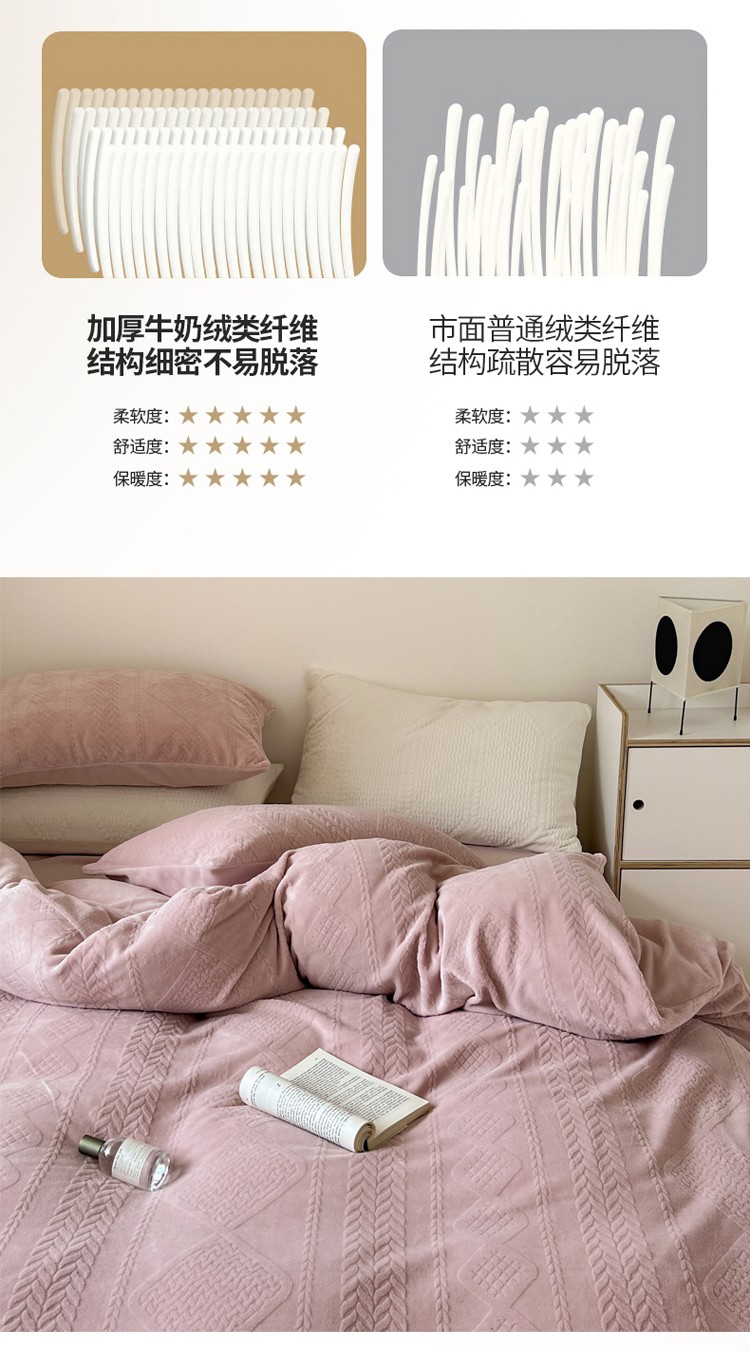 商品名称:总怡家居2022新款雕花绒高克重牛奶绒四件套