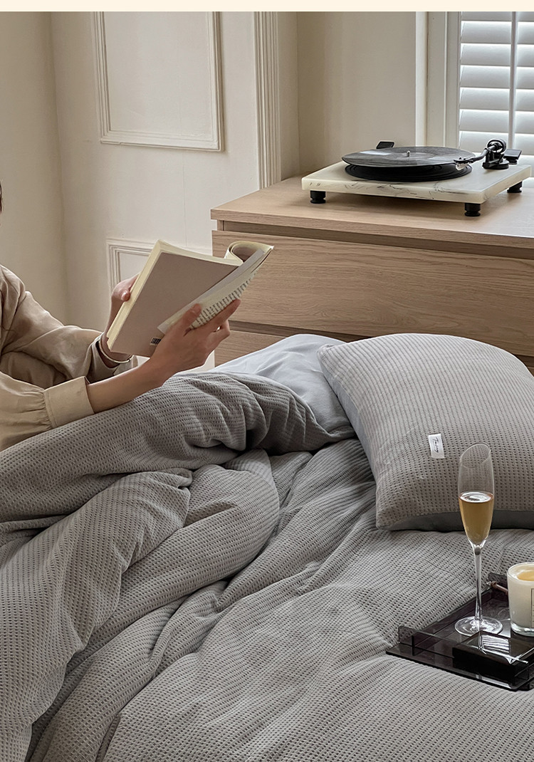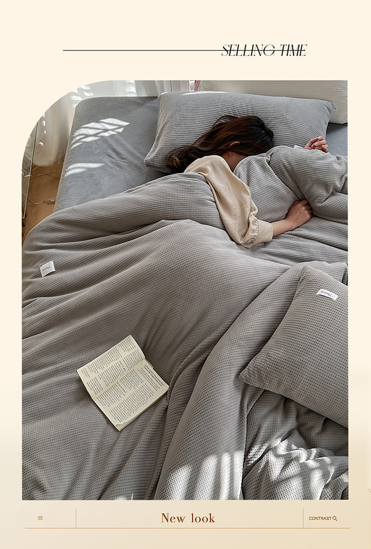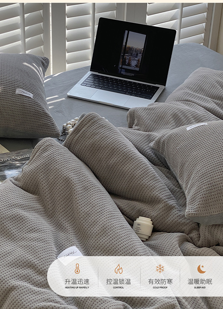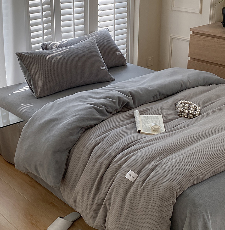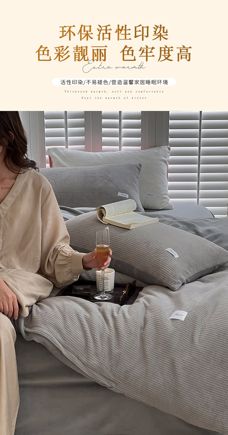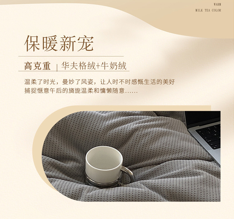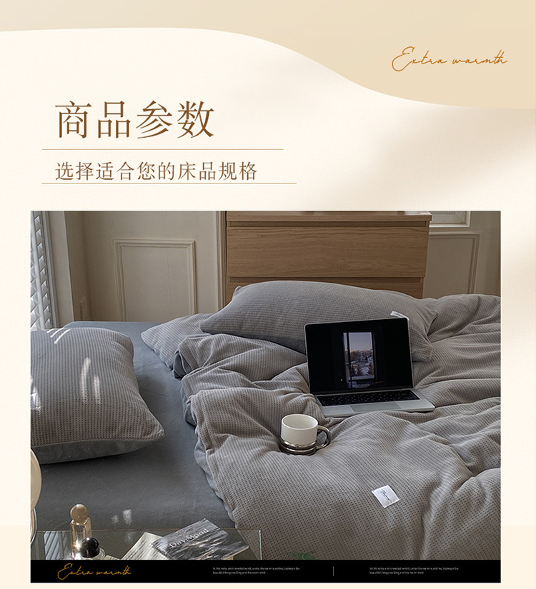 当前位置: 91家纺网 > 商品网购 > 床品套件 > 四件套 > 磨绒四件套 > 时光里 2022新款全消光230克华夫格绒牛奶绒四件套 米灰