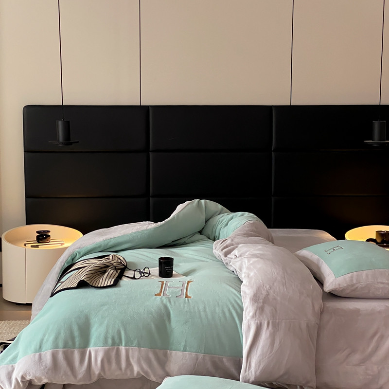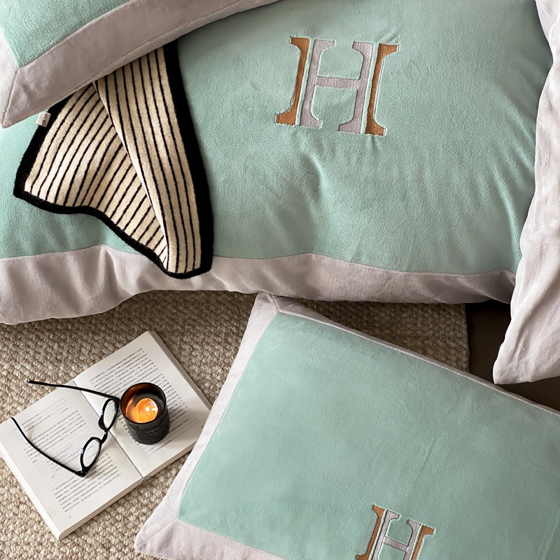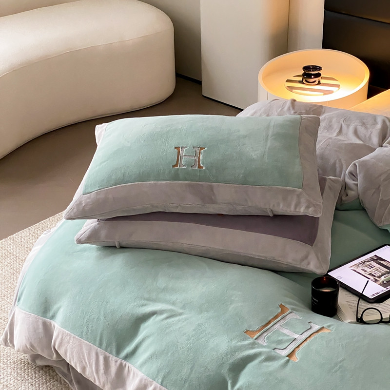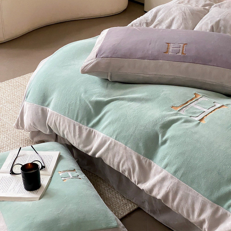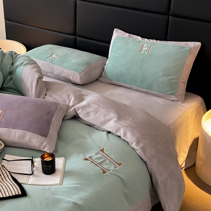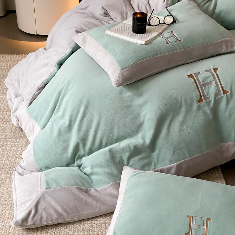 橘滋 2022新款秋冬高端牛奶绒四件套-拼角H产品图 H苍岚绿