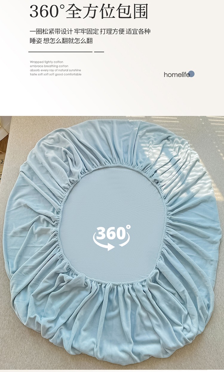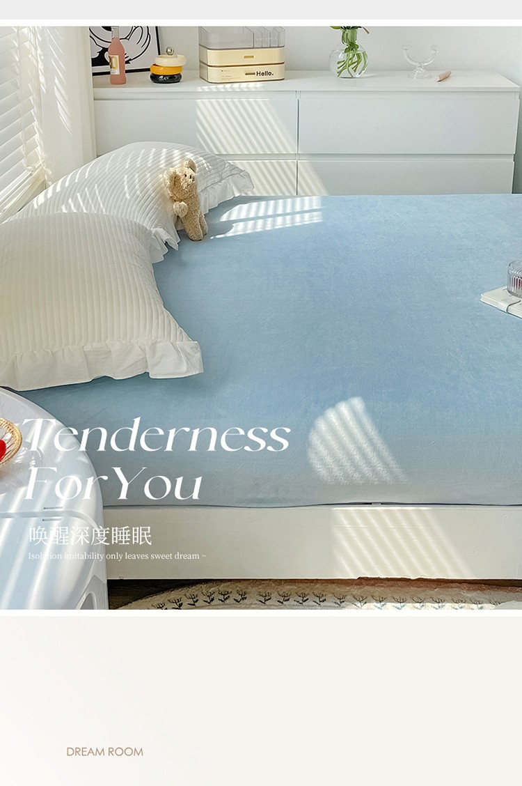 N先生 2023新款纯色牛奶绒单床笠 浅蓝
