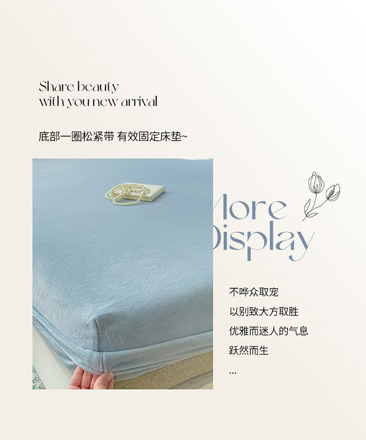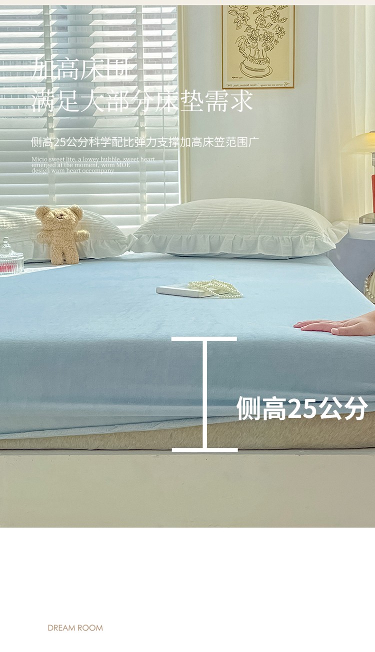 商品名称:N先生 2023新款纯色牛奶绒单床笠 浅蓝