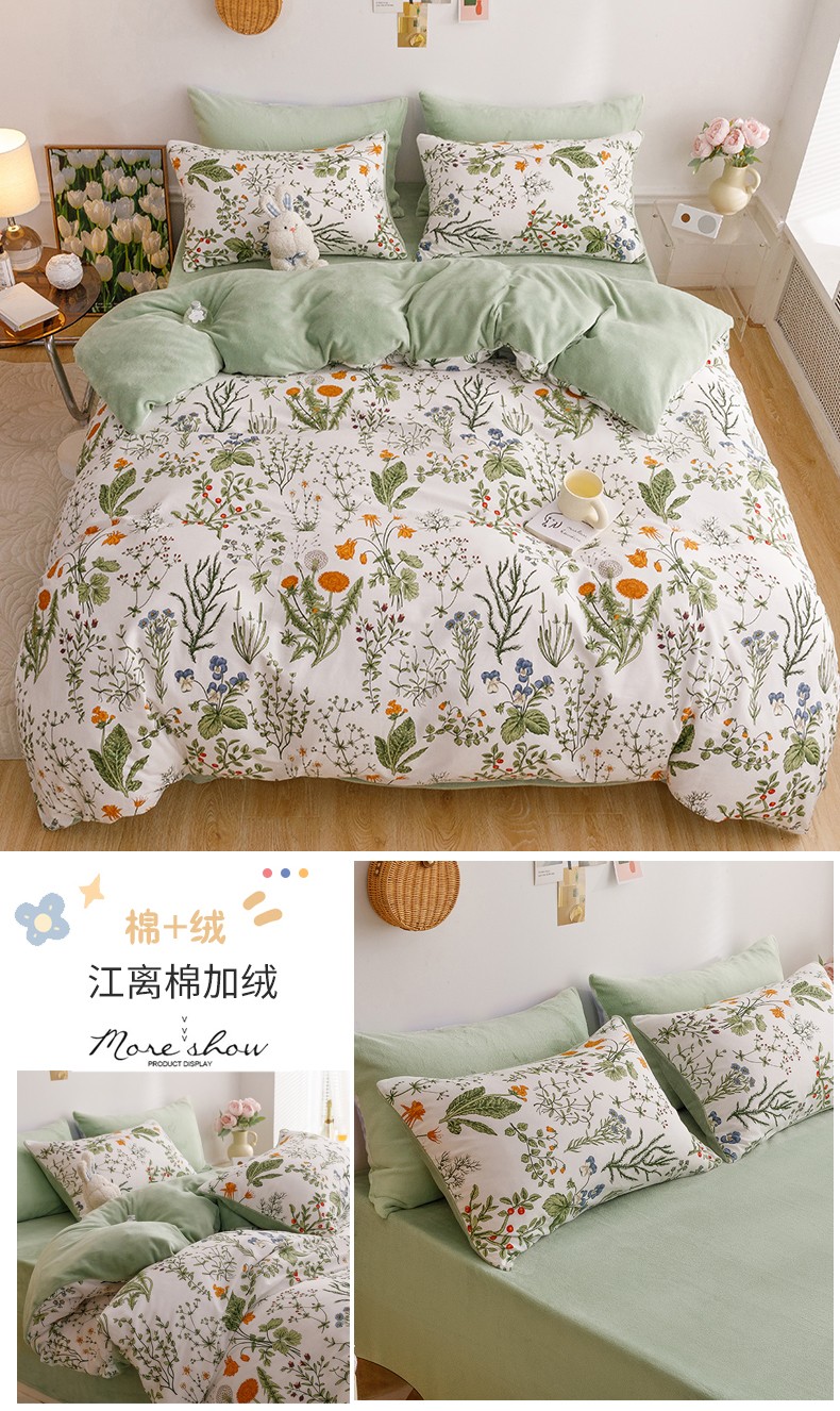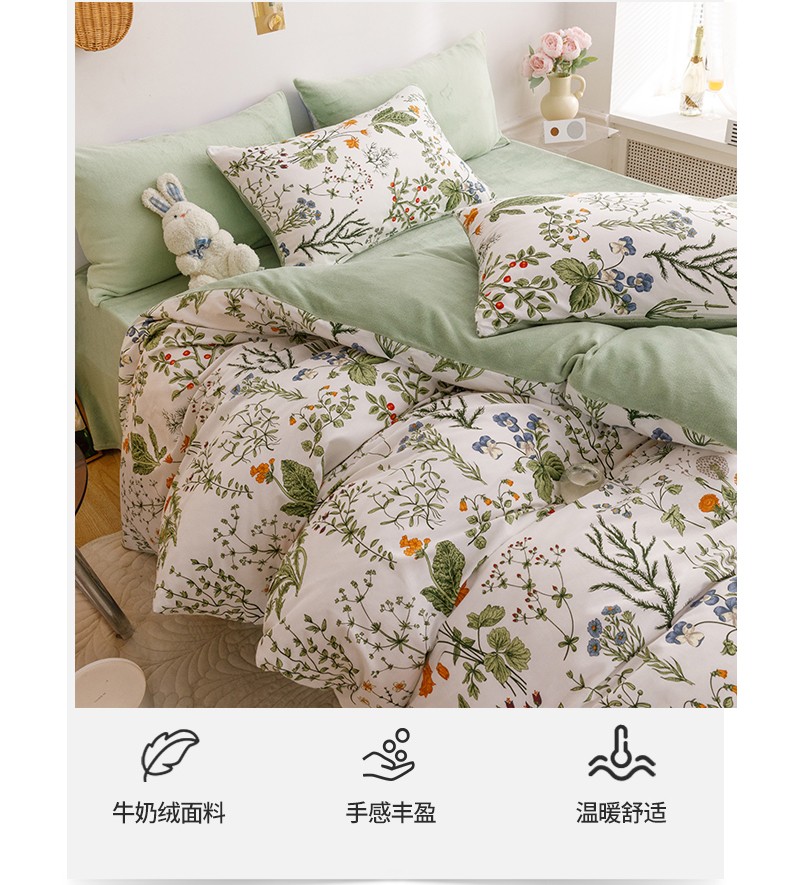 当前位置: 91家纺网 > 商品网购 > 床品套件 > 四件套 > 牛奶绒四件套 > 麦伦 2022新款棉加牛奶绒保暖四件套 小清新系列 江离棉绒