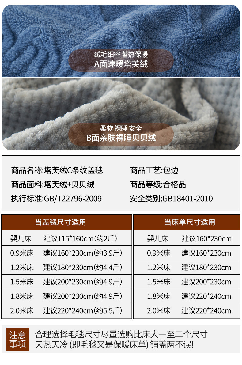 商品名称:(总)21度C 2023新款塔复绒+贝贝绒双层复合毯