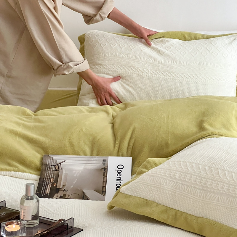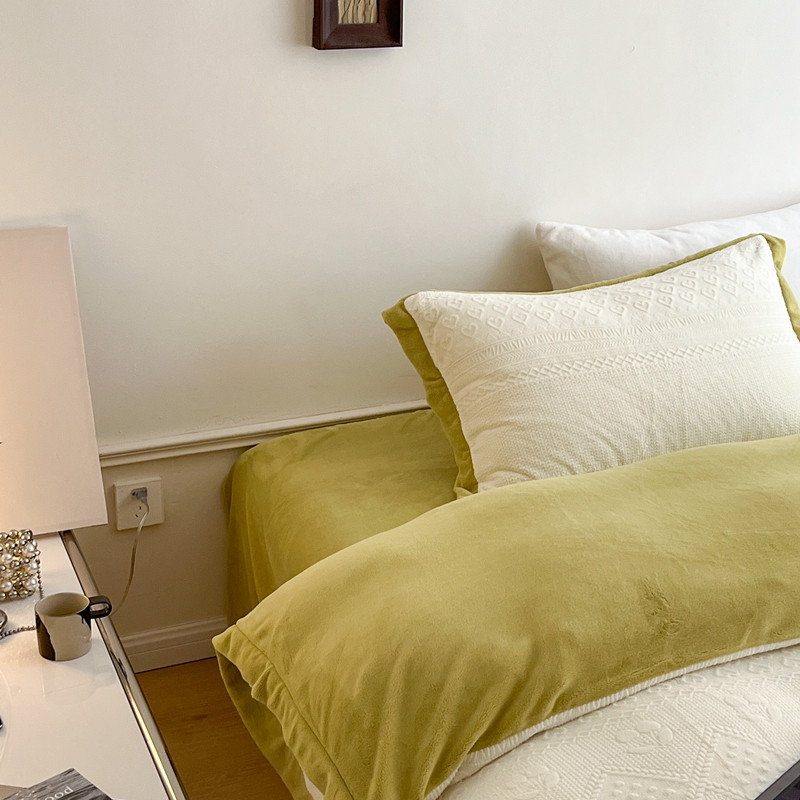商品名称:圆岛 2022新款四色入3D雕花牛奶绒保暖四件套 风格一 复古绿