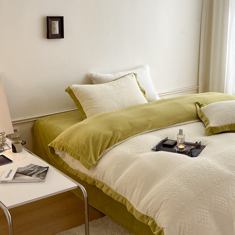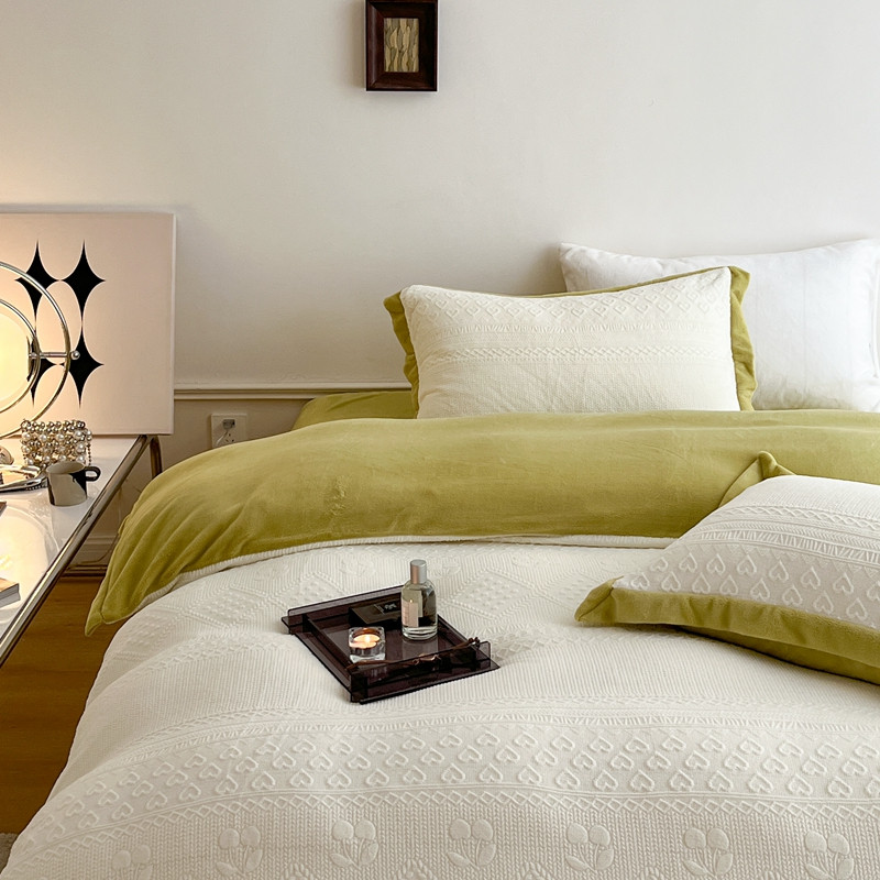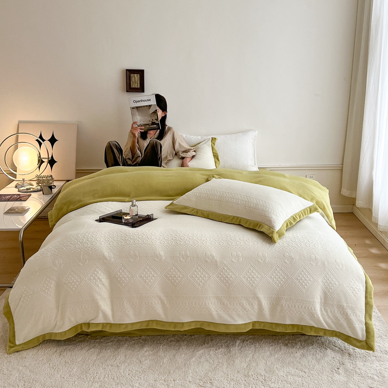 圆岛 2022新款四色入3D雕花牛奶绒保暖四件套 风格一 复古绿