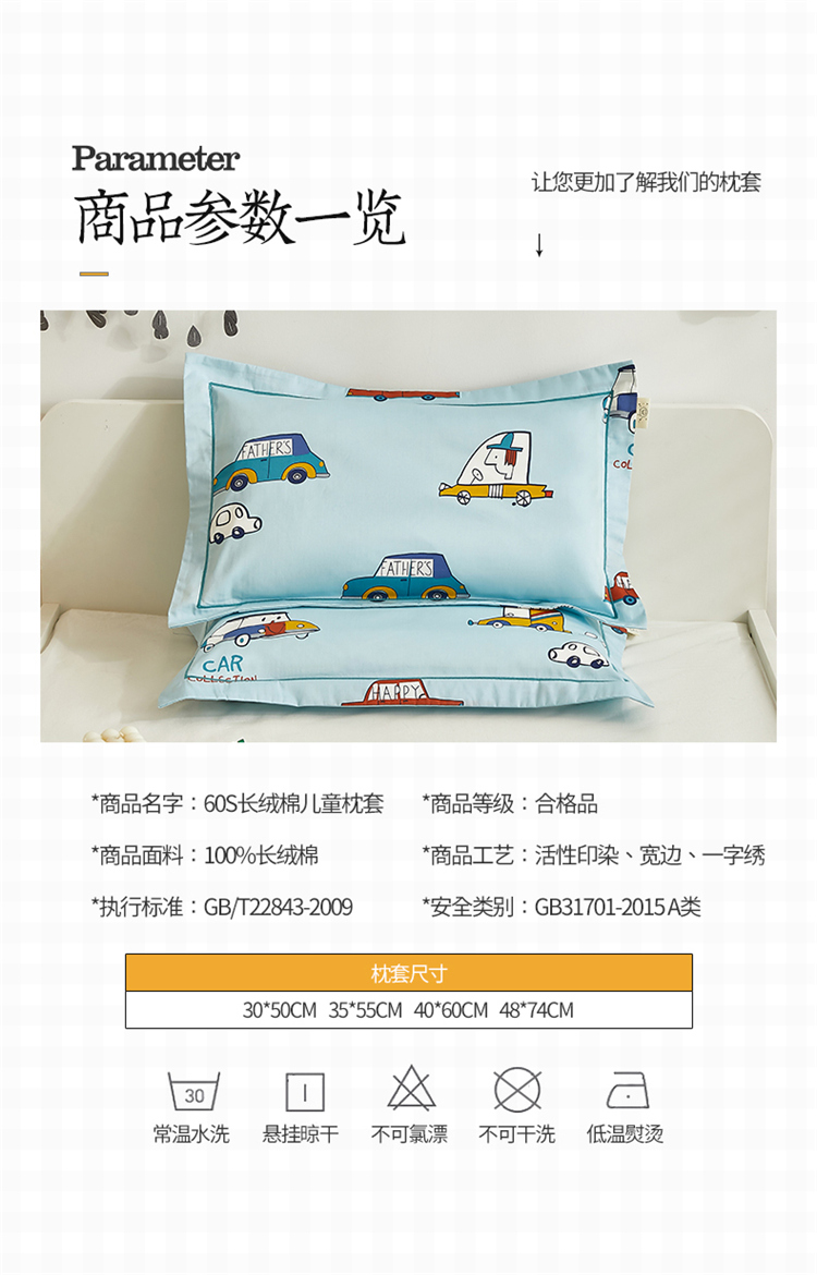 商品名称:(总)宝宝枕头60支长绒棉儿童枕套一只装