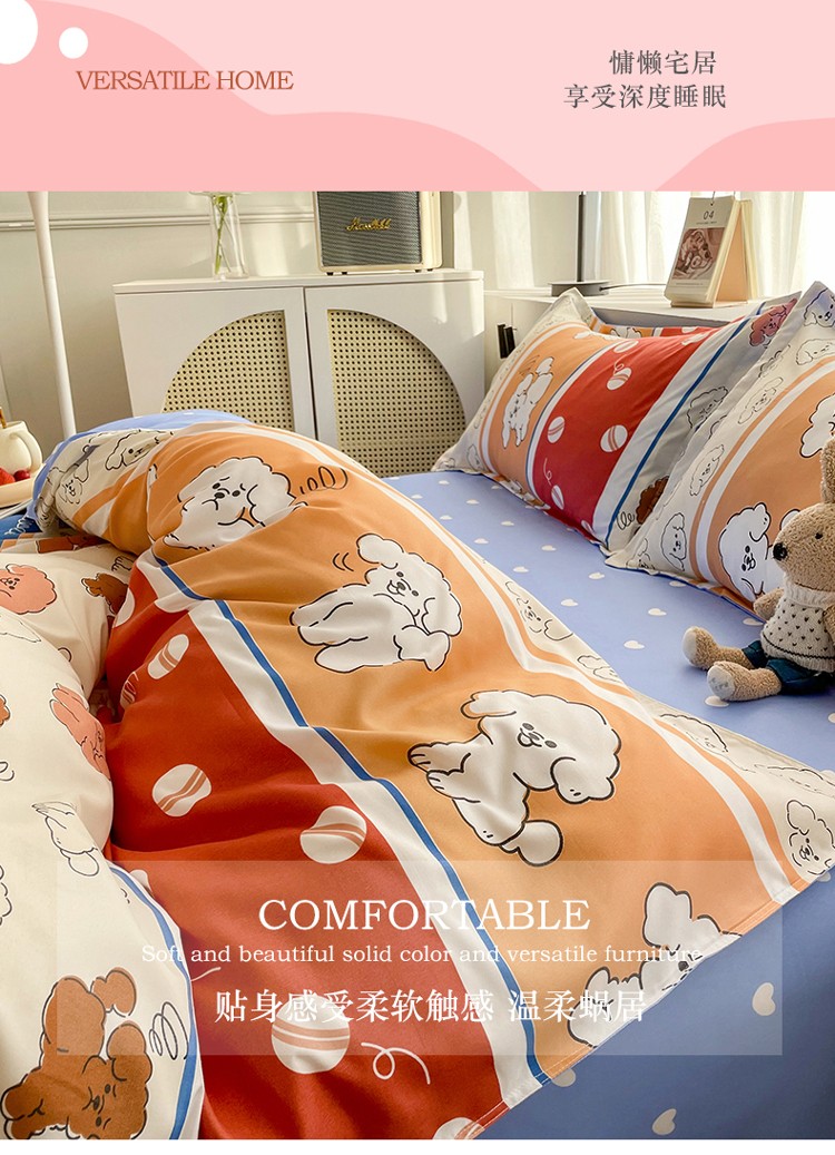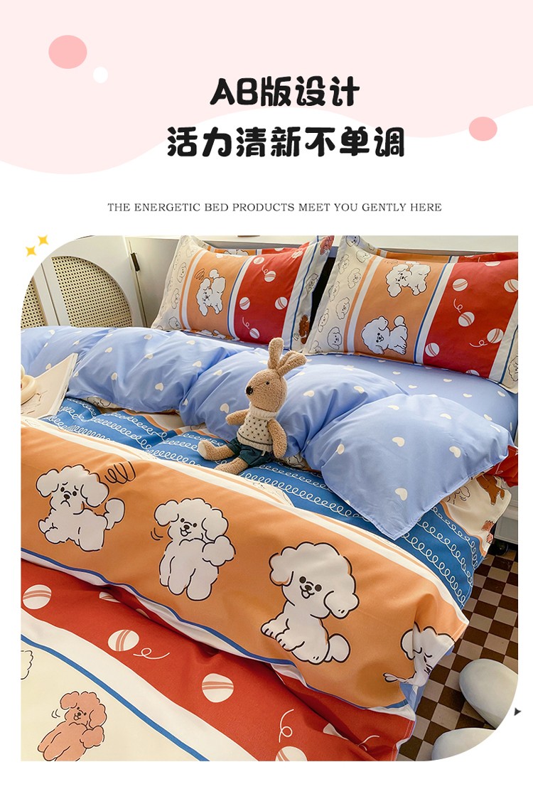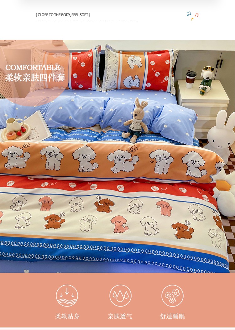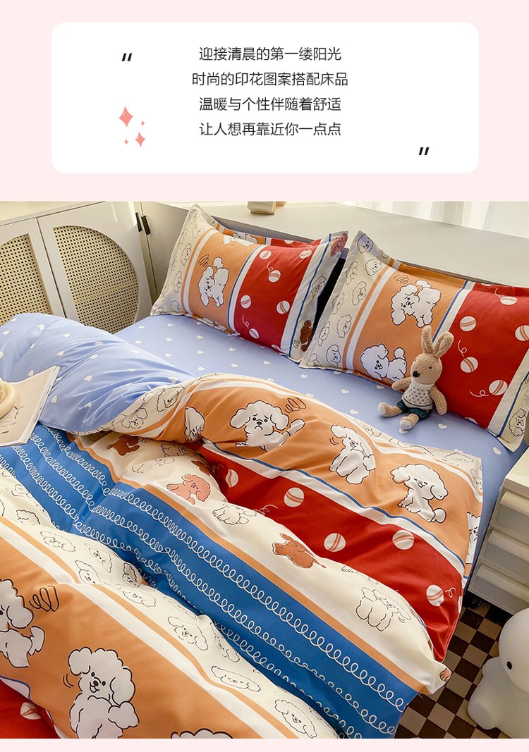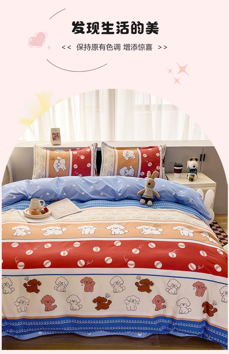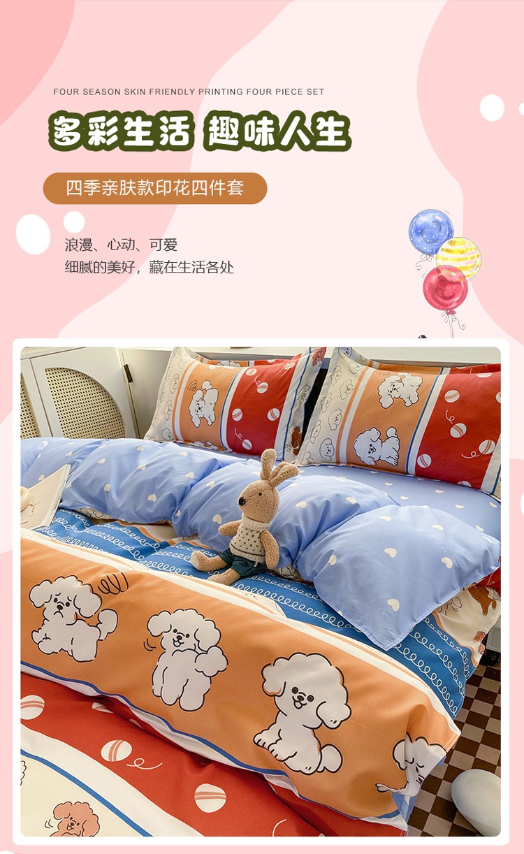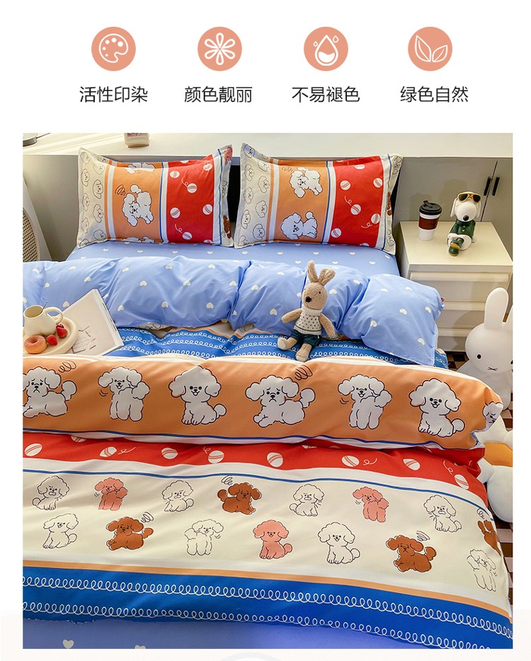 宏源2022年12月新款芦荟棉亲肤印花四件套 百变狗
