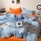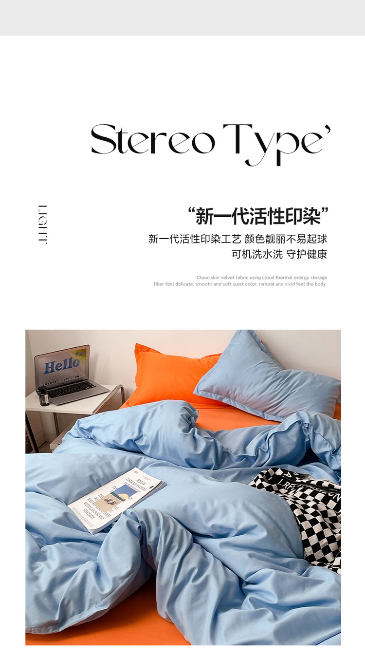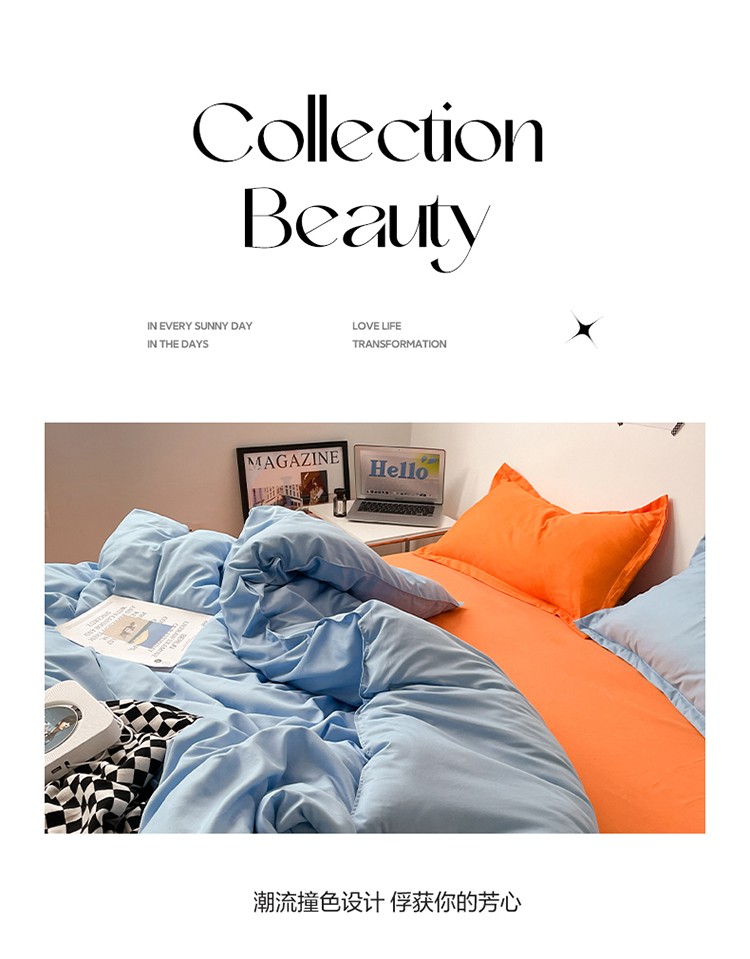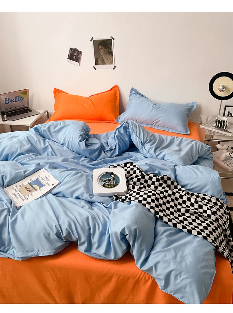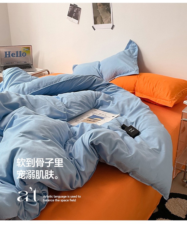 贝拉梦 2023款亲肤棉纯色拼色治 愈系四件套 海洋天蓝+橘子汽水