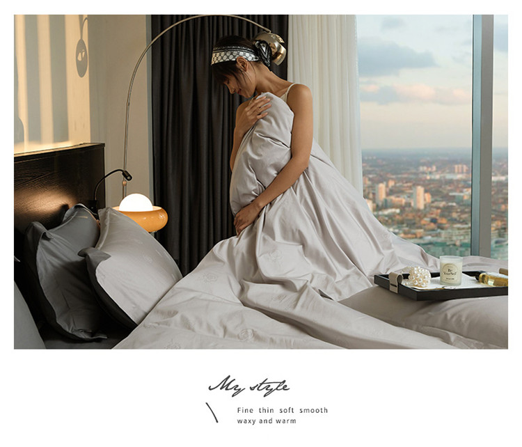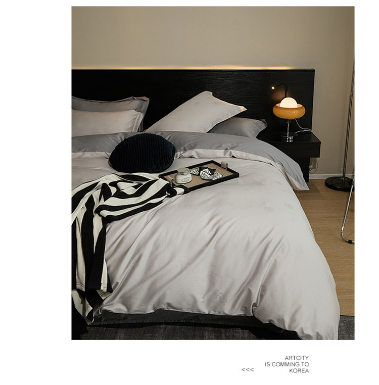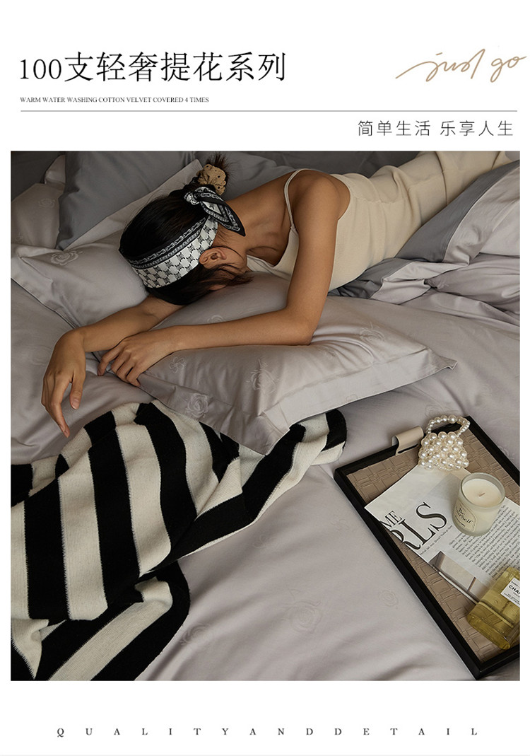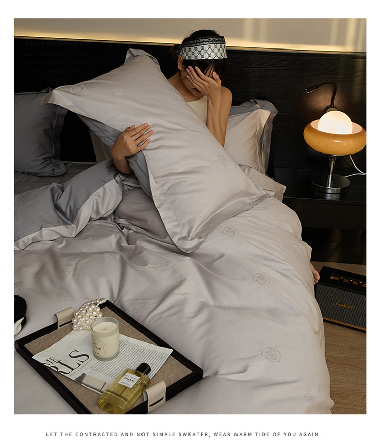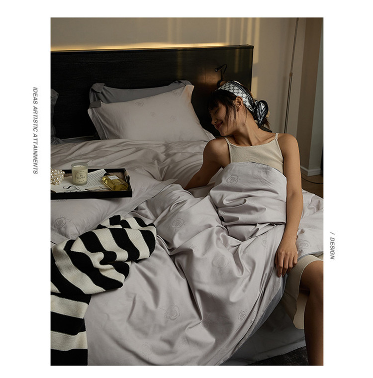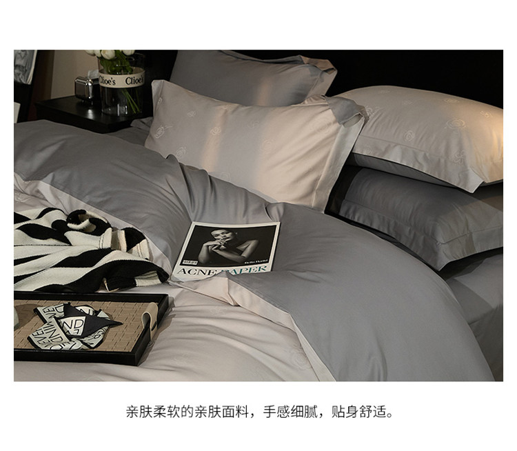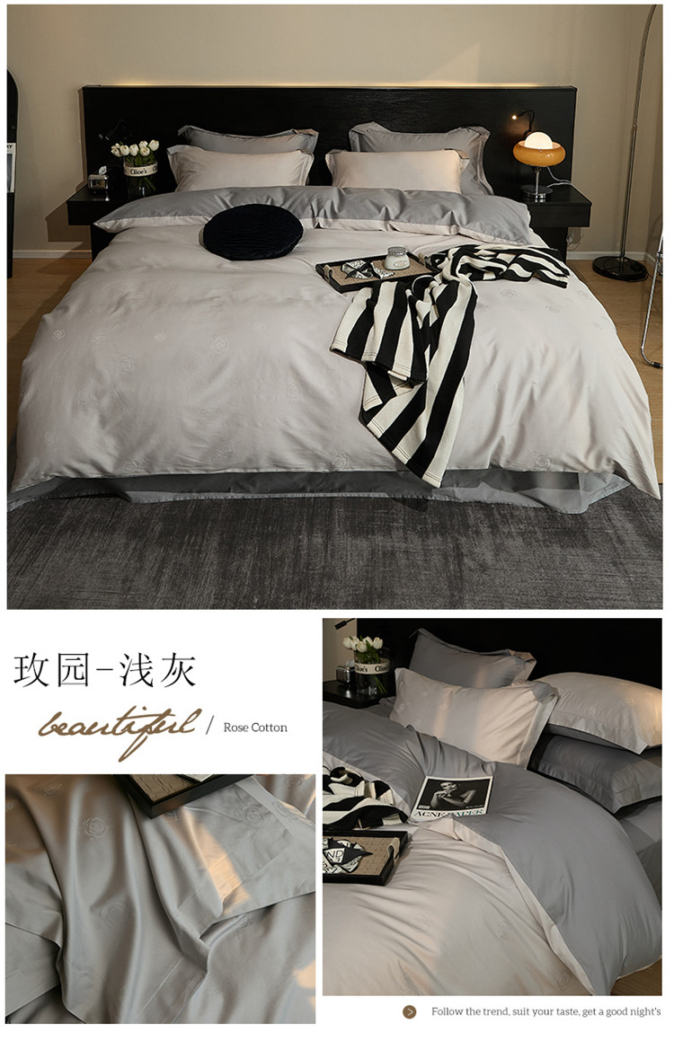 当前位置: 91家纺网 > 商品网购 > 床品套件 > 四件套 > 长绒棉四件套 > 新款轻奢提花系列四件套 玫园-浅灰