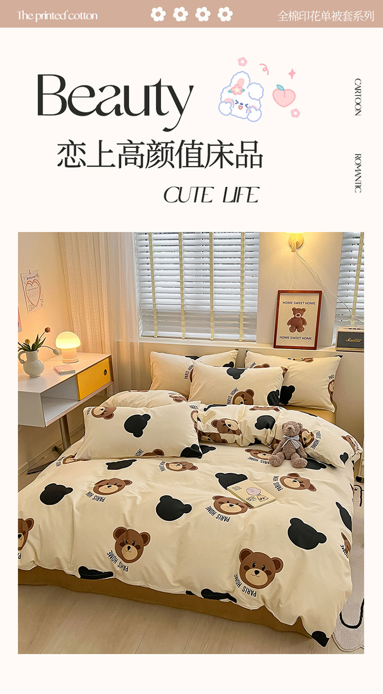 蓝邻 2023年新款全棉印花单品系列-单被套 呆萌熊