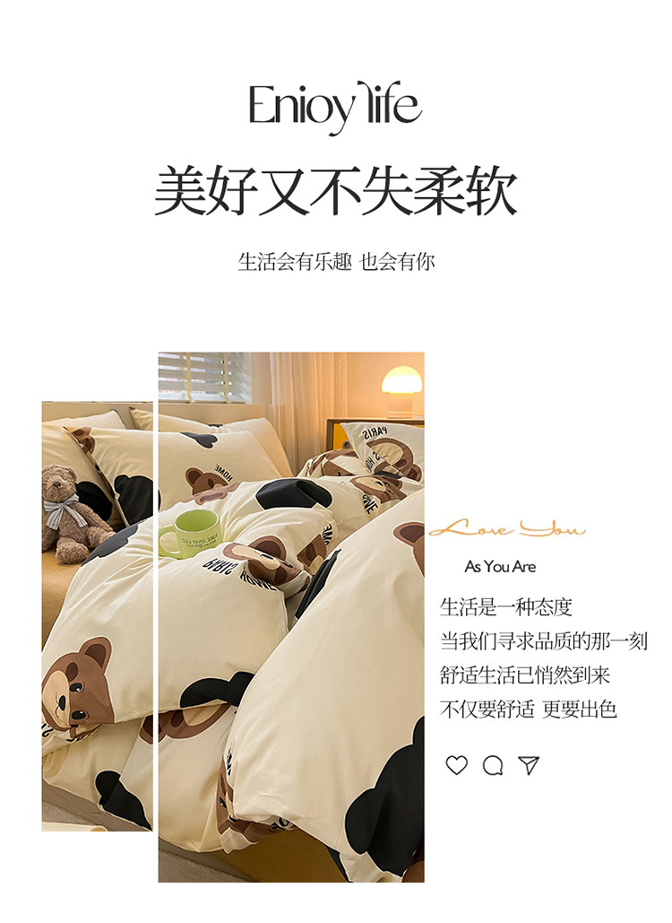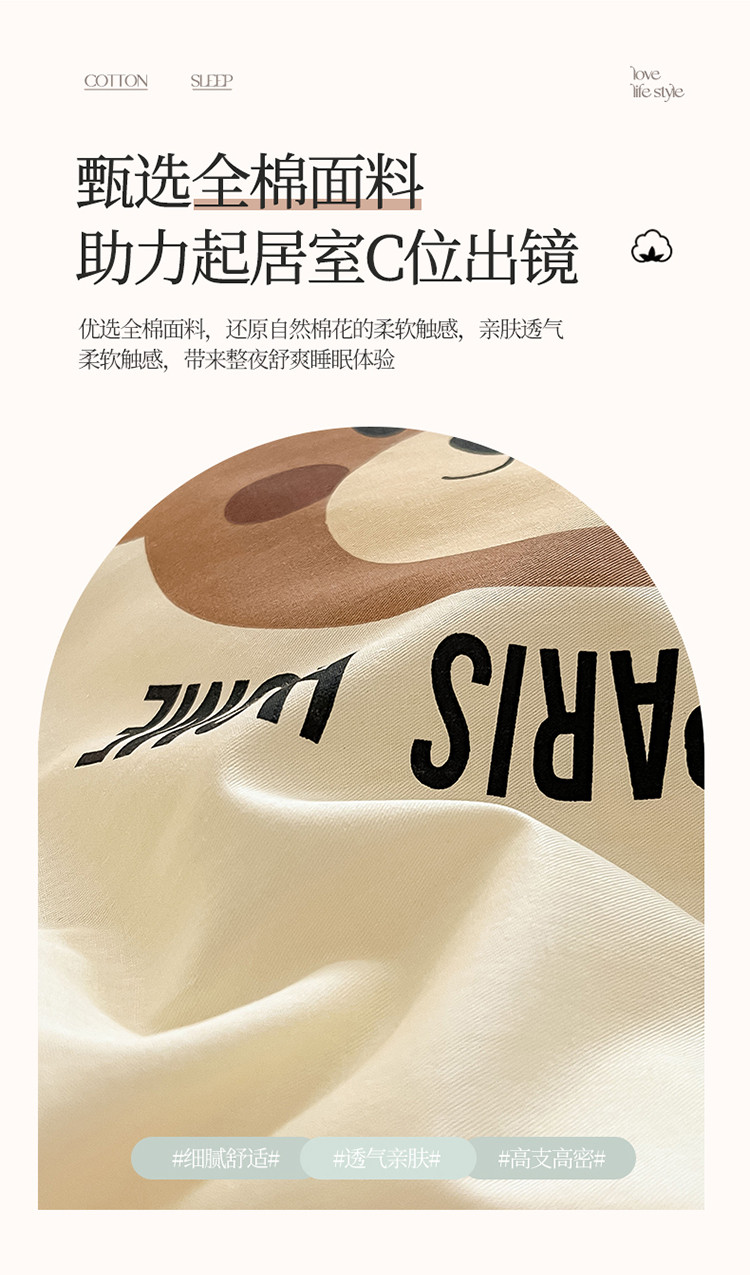 商品名称:蓝邻 2023年新款全棉印花单品系列-单被套 呆萌熊