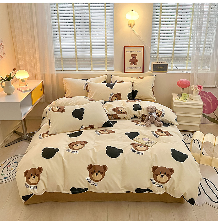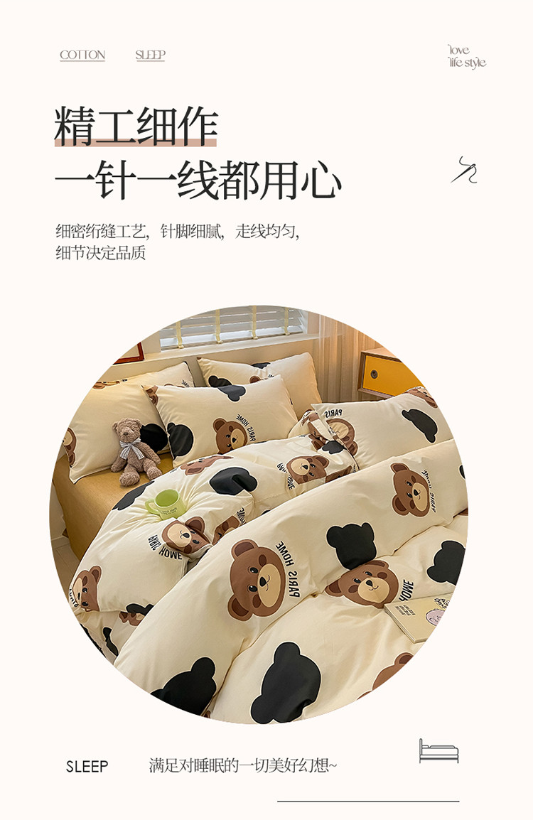 (总)蓝邻家纺 2024新款小清新印花全棉四件套学生宿舍三件套,茶园兔,风翩,机灵兔熊,可妮露,藤蔓兔,筱薇