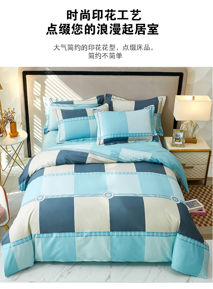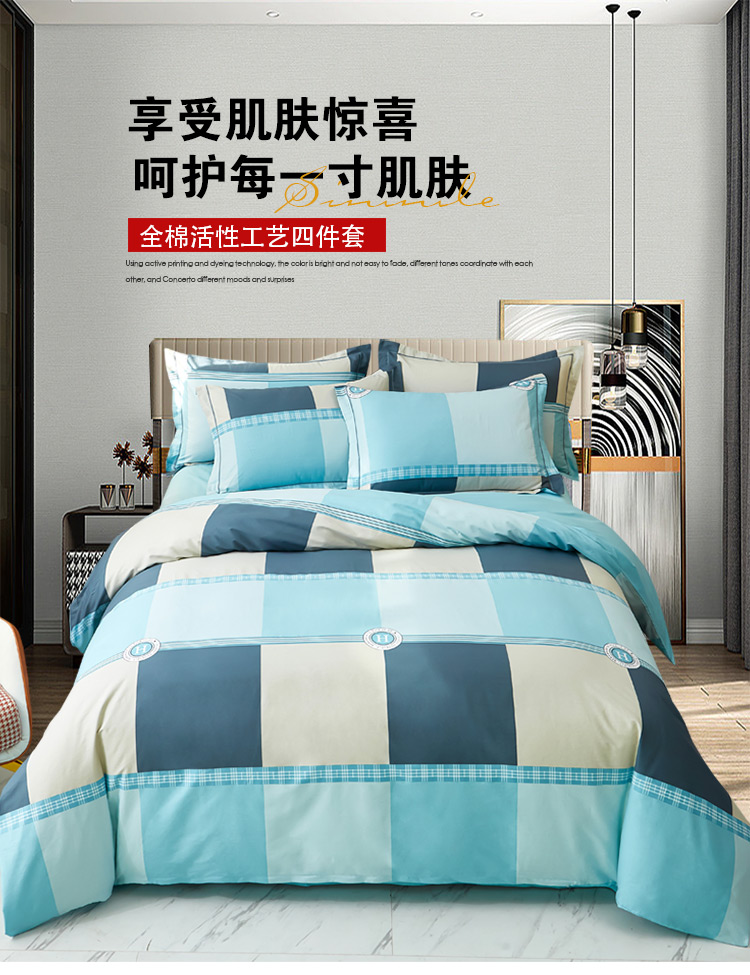 商品名称:雲归梦2023新款13372全棉活性大版印花简约居家四件套 永恒-兰