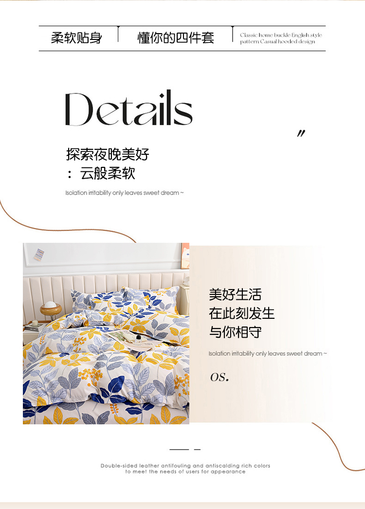 当前位置: 91家纺网 > 商品网购 > 床品套件 > 四件套 > 化纤普通四件套 > 梵巢家纺 芦荟棉三四件套叶迷风