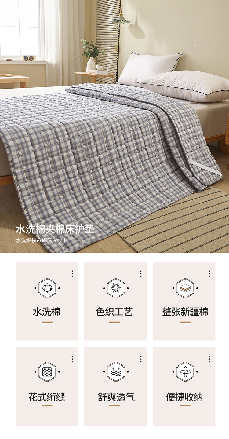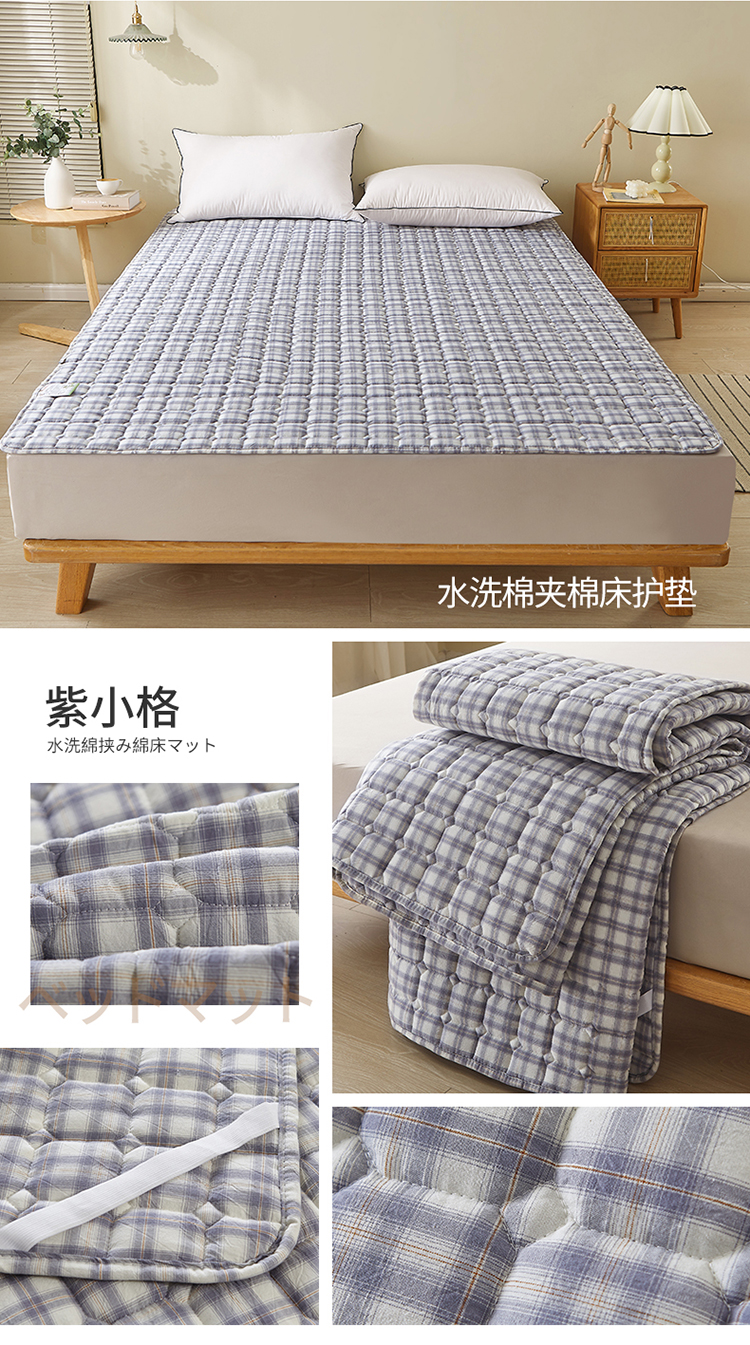 商品名称:富威堡 2023新款棉花薄褥子保护垫床垫垫子 紫小格
