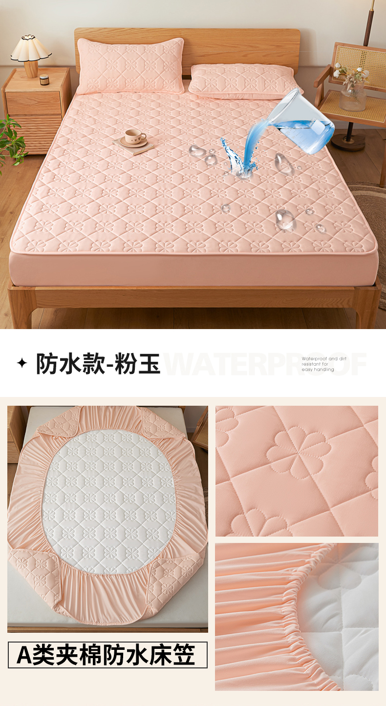 • 91家纺网 家纺一手货源 找家纺 九亭 2023新款A类原棉夹棉防水款床笠床罩 防水款-粉玉