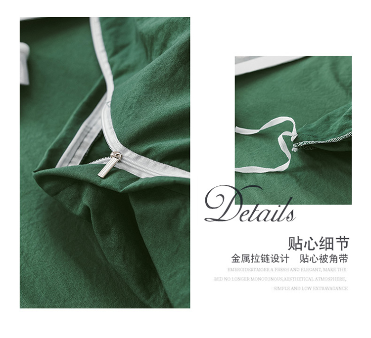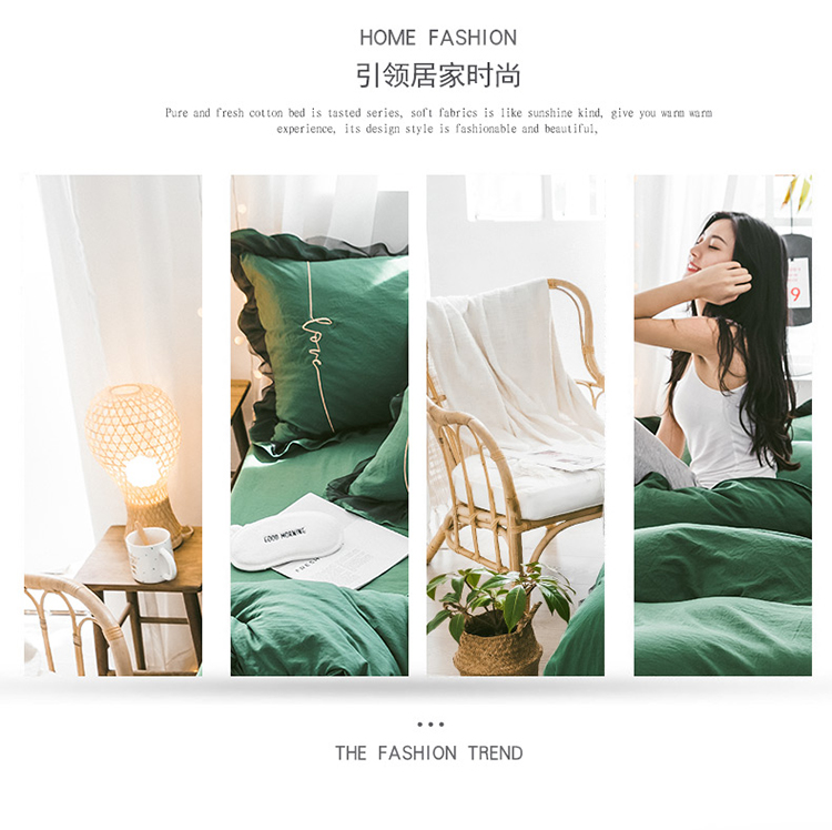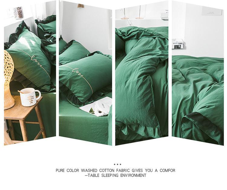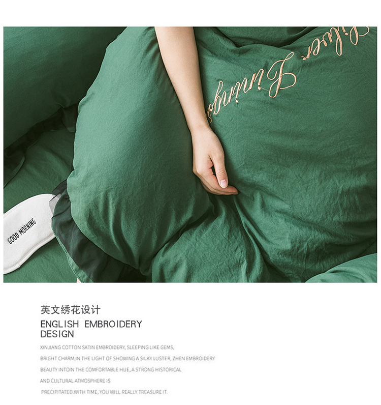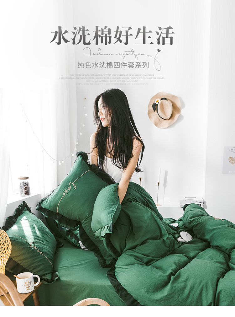 苏木年华2023新款水洗棉蕾丝刺绣四件套 墨绿