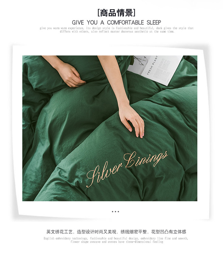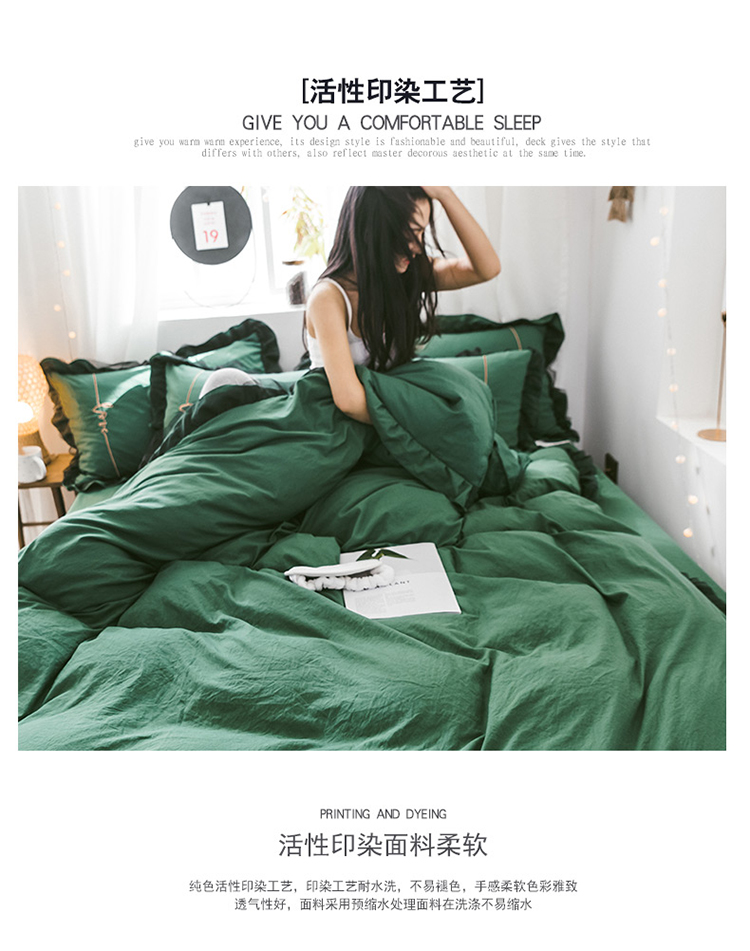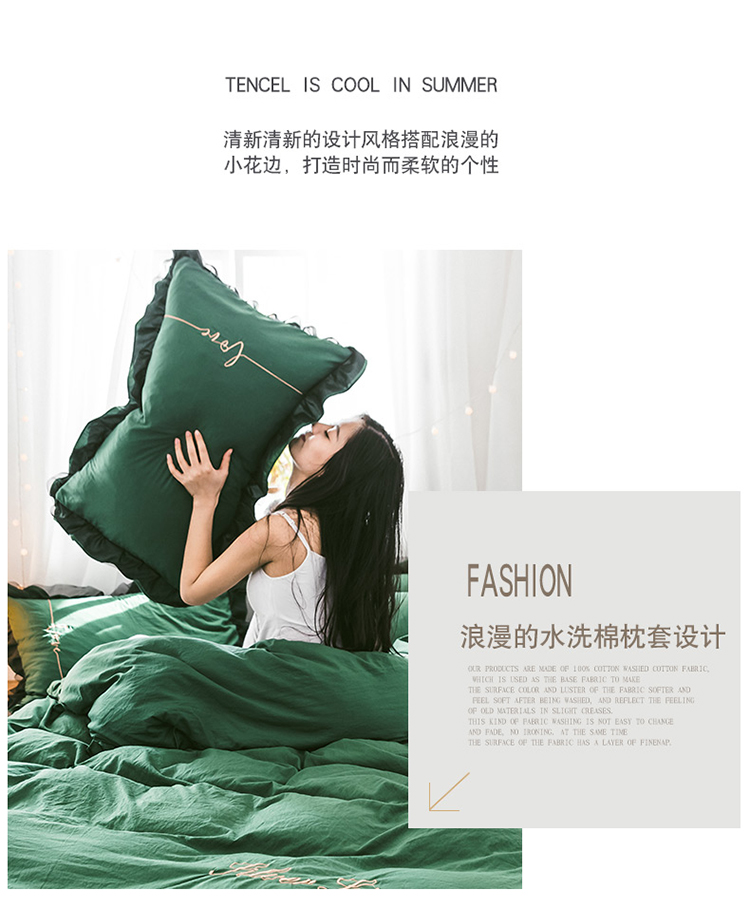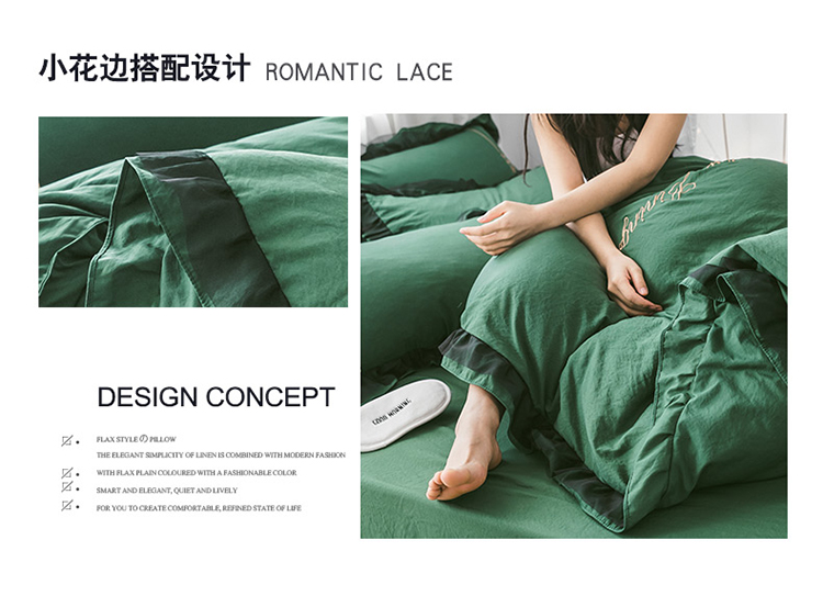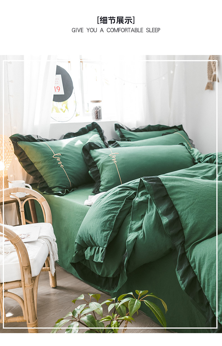 商品名称:苏木年华2023新款水洗棉蕾丝刺绣四件套 墨绿