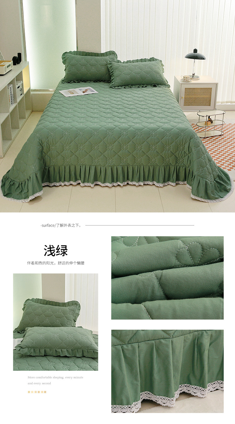 • 91家纺网 家纺一手货源 找家纺 情煊家纺 2023新款全棉夹棉纯色床盖三件套(可定制尺寸) 浅绿