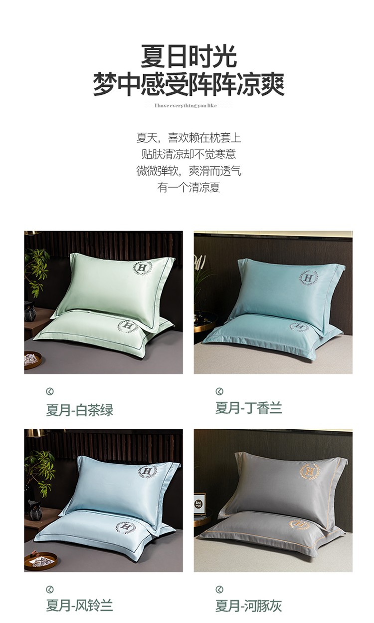 丽美人家纺 2023新款夏月枕套 夏月-白茶绿