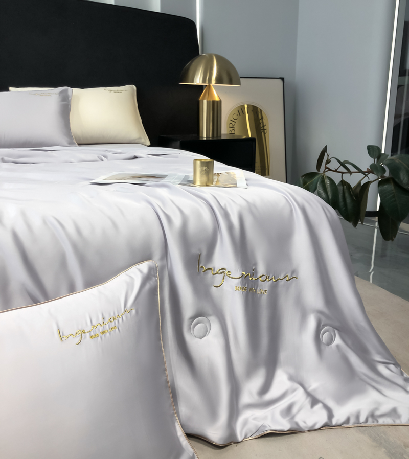 当前位置: 91家纺网 > 商品网购 > 床品套件 > 四件套 > 夏被四件套 > 眠屿家纺 2023年新款夏被四件套 锦绣银