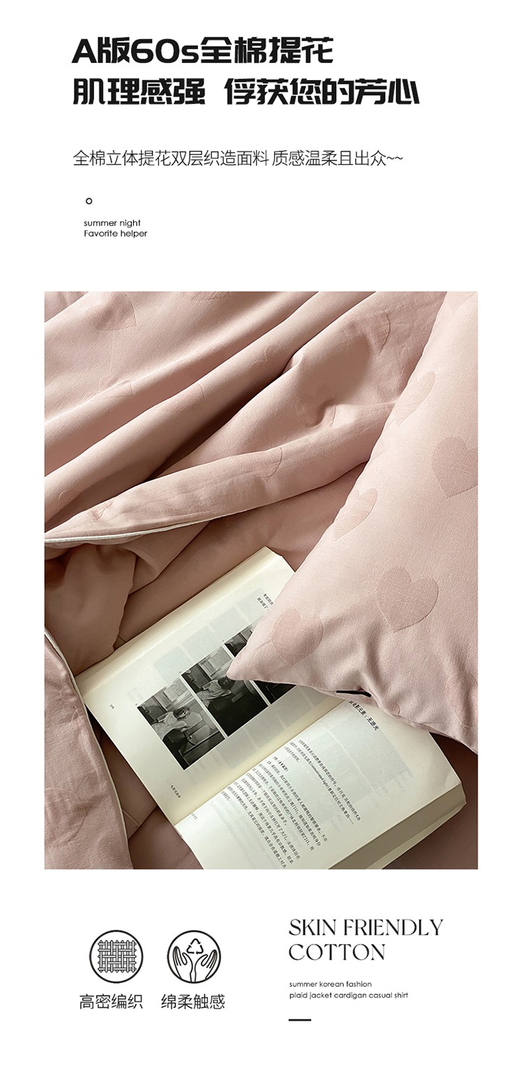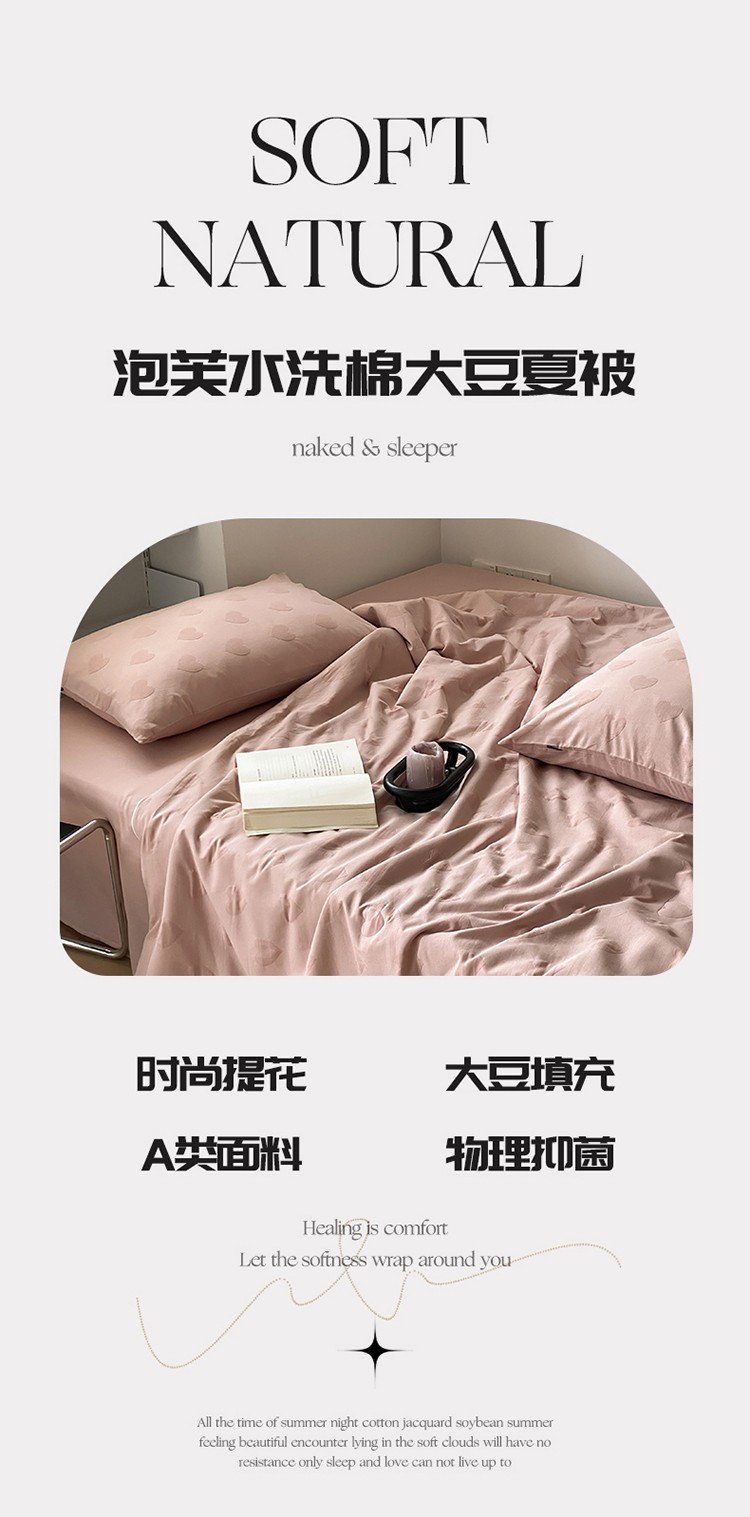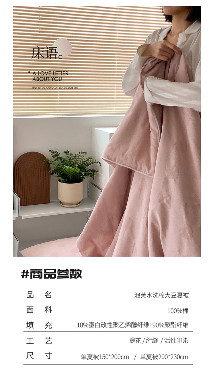 商品名称:莱福仕家纺2024新款泡芙水洗棉大豆夏被 爱心-蜜桃粉
