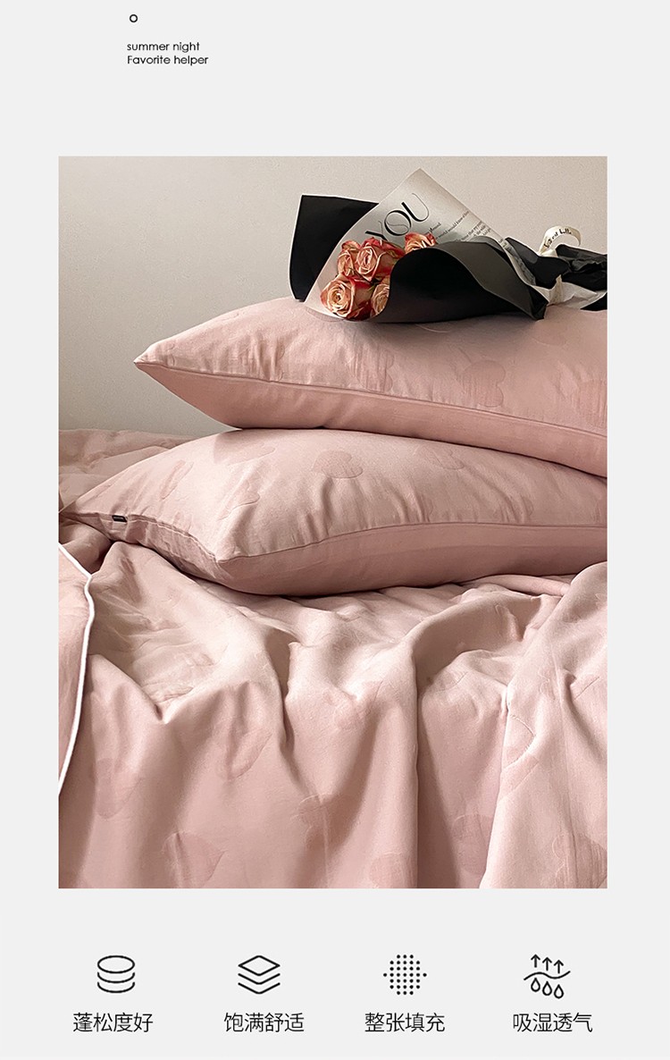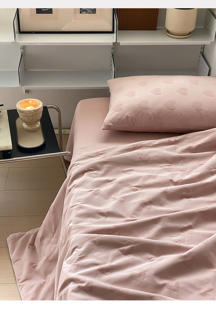 莱福仕家纺2024新款泡芙水洗棉大豆夏被 爱心-蜜桃粉