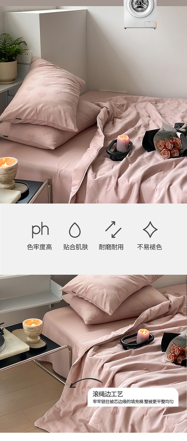 (总)莱福仕家纺 2025新款60支全棉磨毛10A中科抗菌被被子被芯,组合图仅供展示不可下单,富山白,蔷薇粉