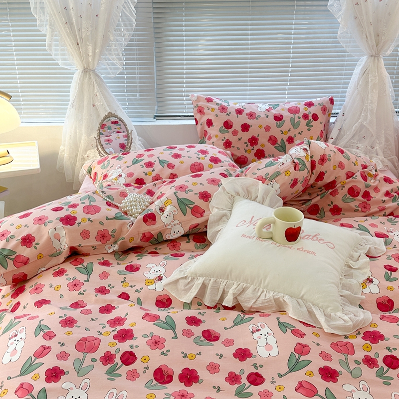 商品名称:昔可2023新款3月春日全棉四件套 花海小兔