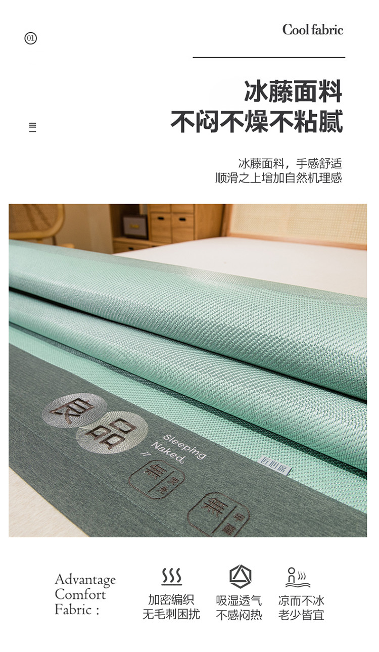 当前位置: 91家纺网 > 商品网购 > 床上用品 > 凉席 > 藤席 > 全季 2023新款A类良品系列冰藤席 良品-碧绿(床笠款)