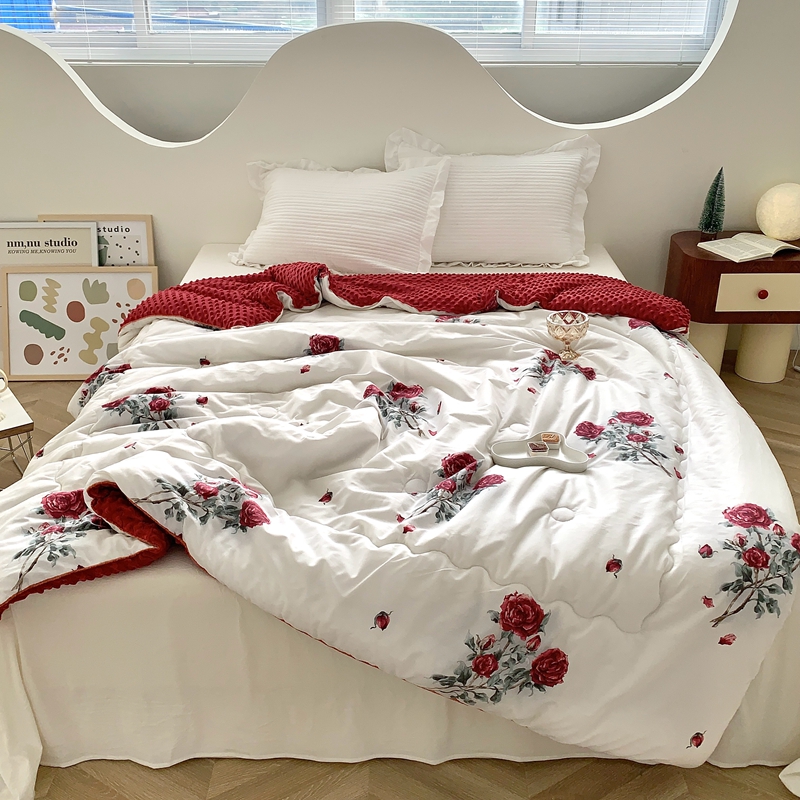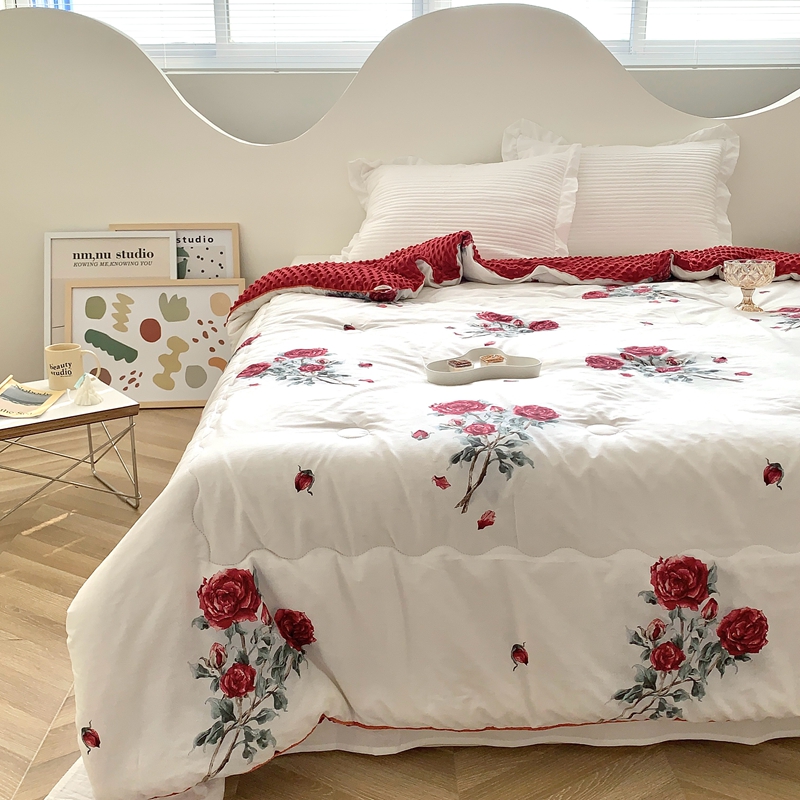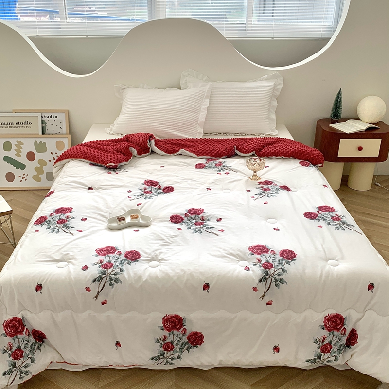 商品名称:星期八 2023新款全棉豆豆春秋被夏被 玫瑰花