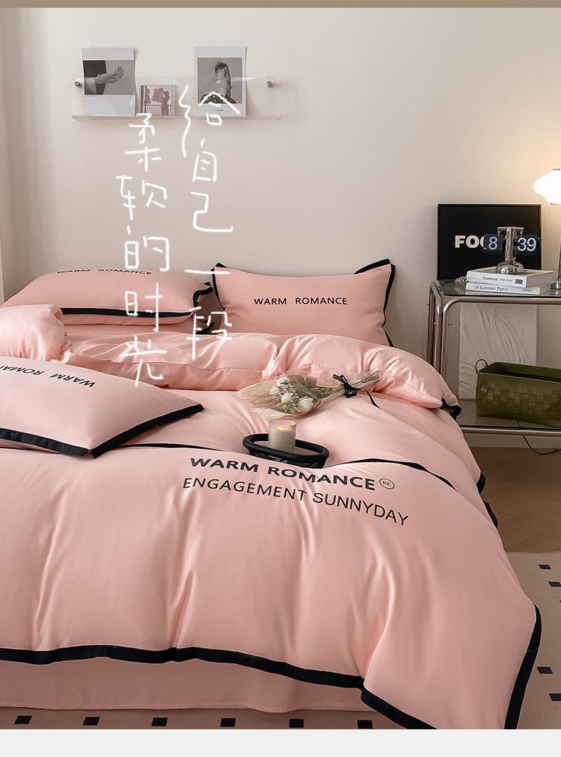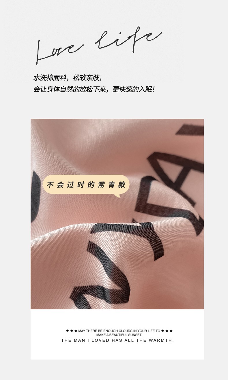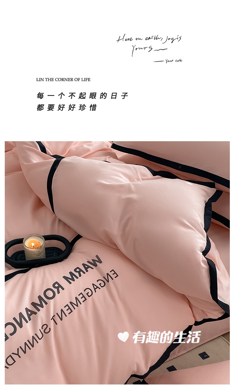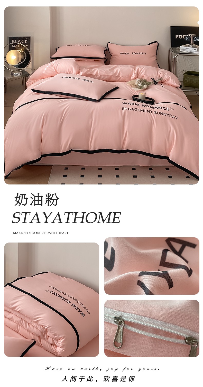 商品名称:眠帛家居2023新款A类气质极简水洗棉四件套 奶油粉