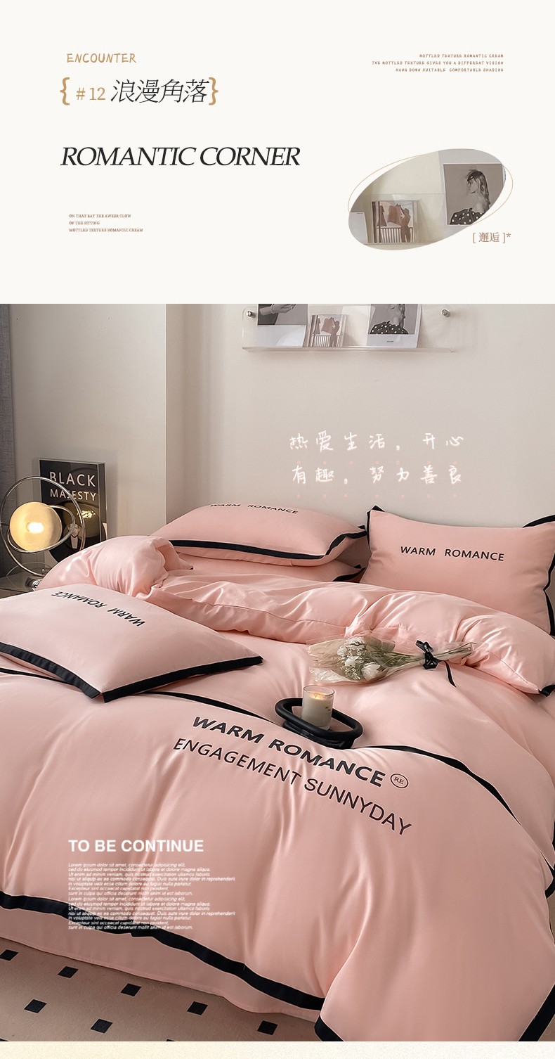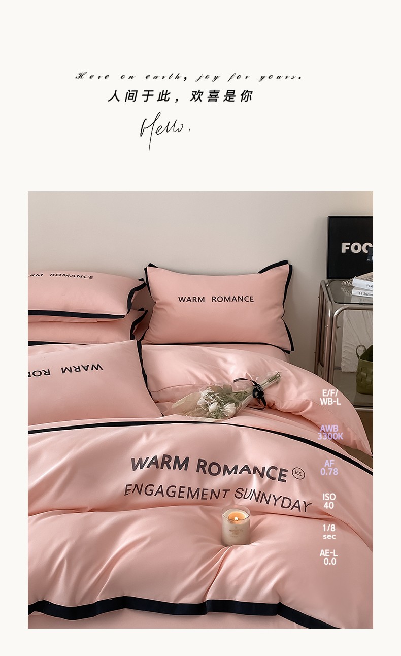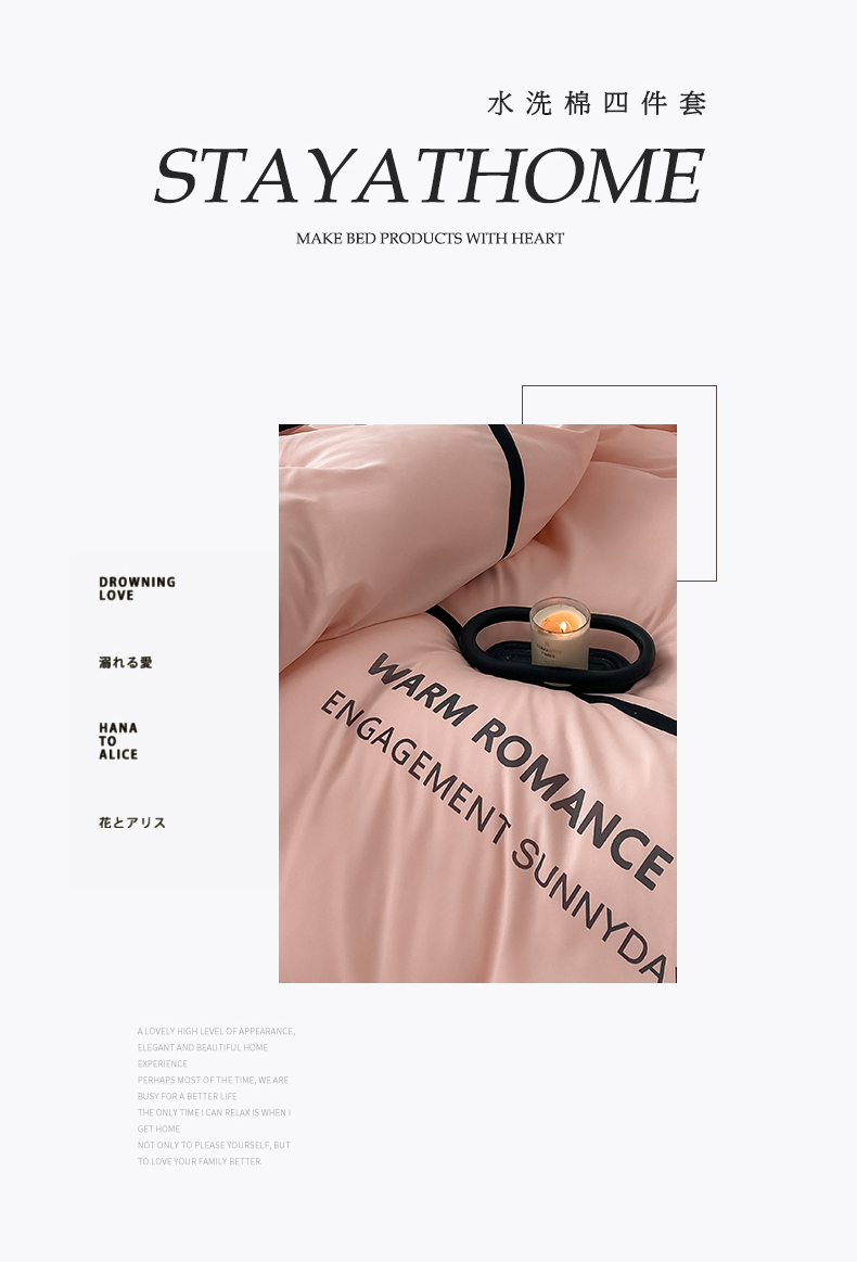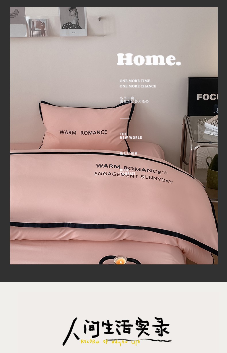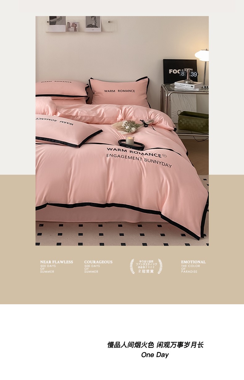 商品名称:眠帛家居2023新款A类气质极简水洗棉四件套 奶油粉