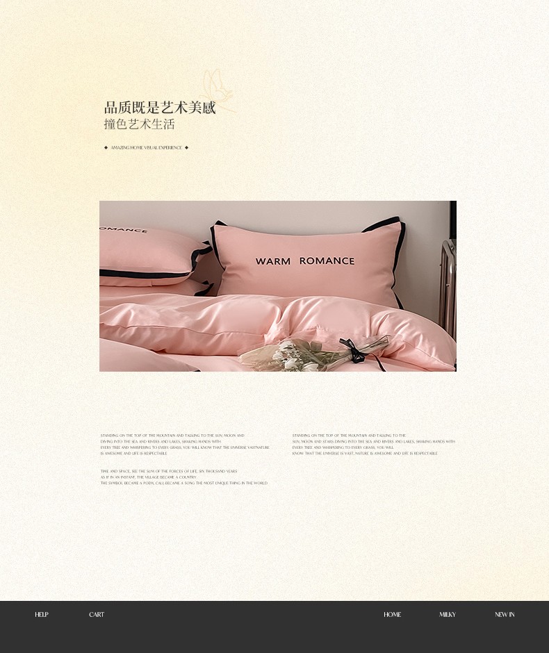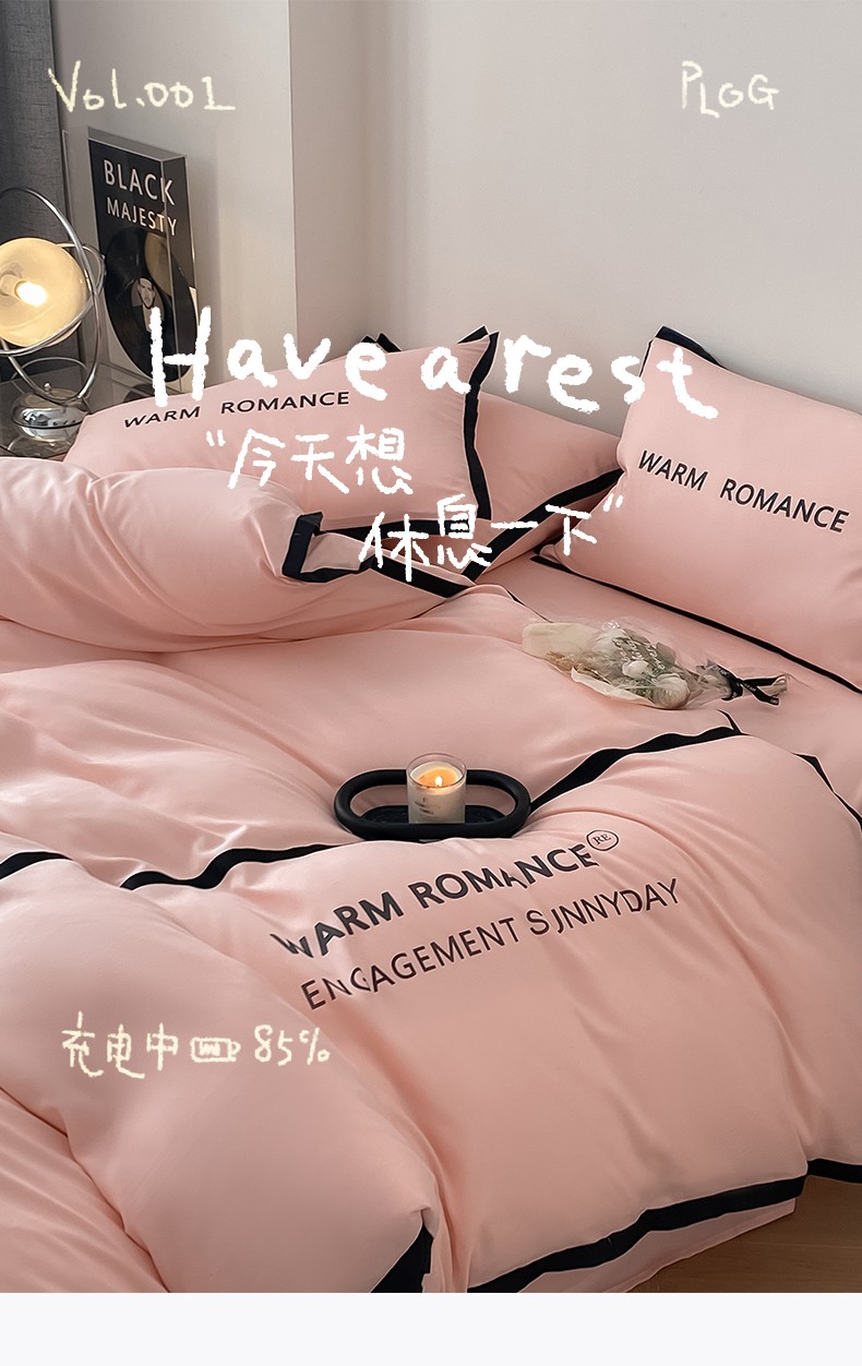 眠帛家居2023新款A类气质极简水洗棉四件套 奶油粉