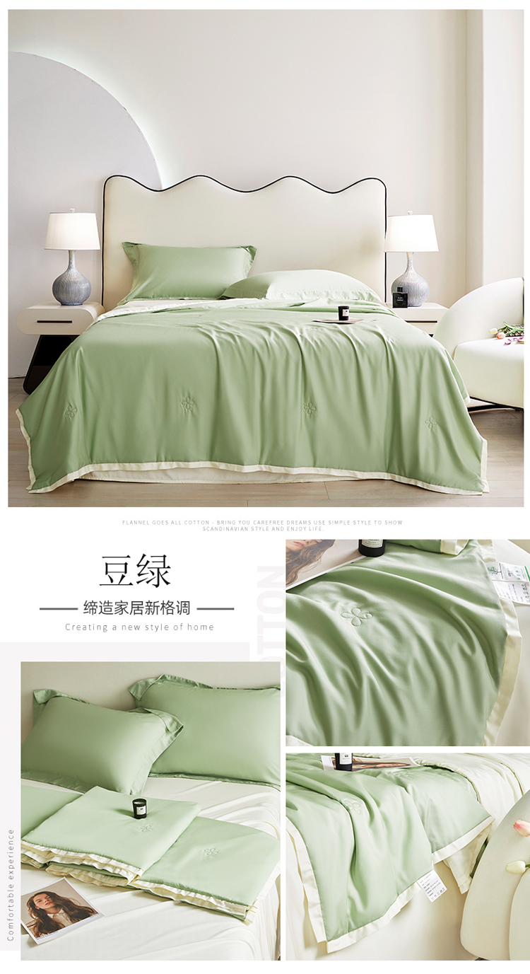 天瑜家纺 2024新款纯色天丝夏被 豆绿
