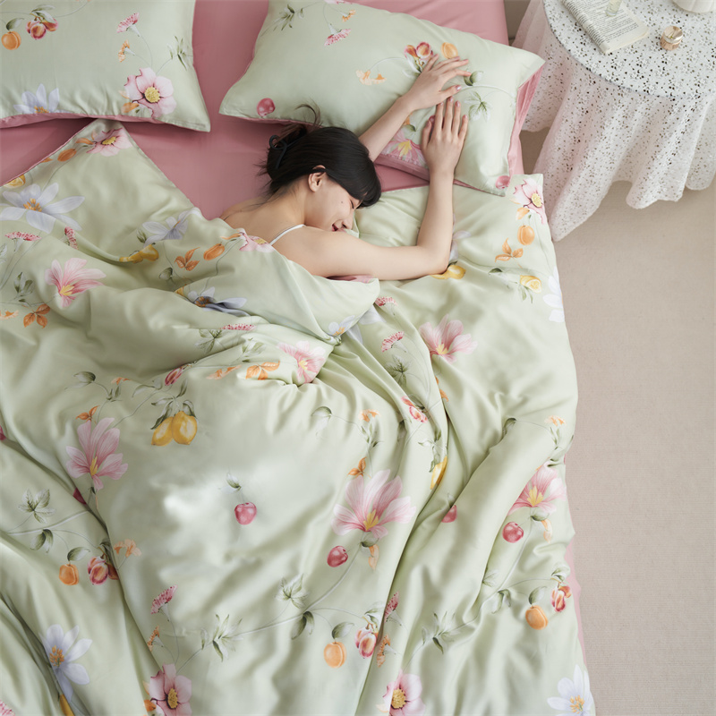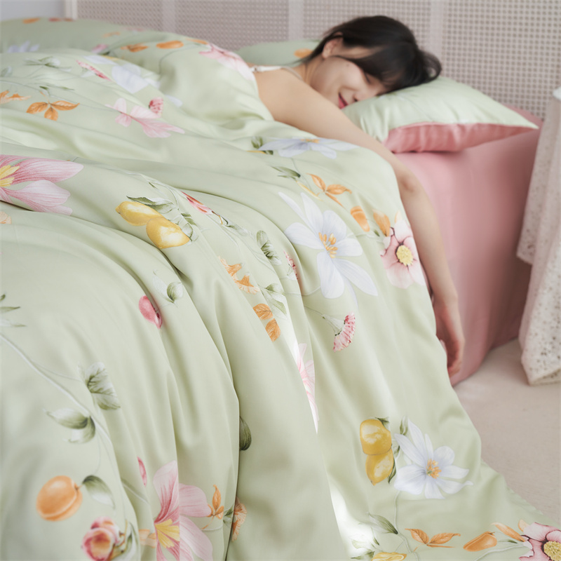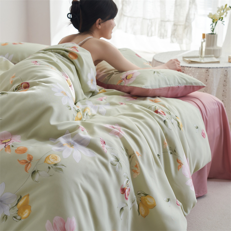 商品名称:时年 2023新款天丝印花系列四件套-第三期 浅语初开-绿