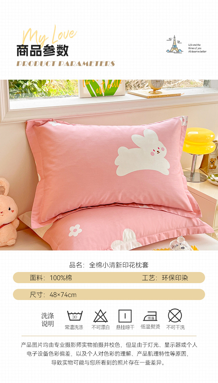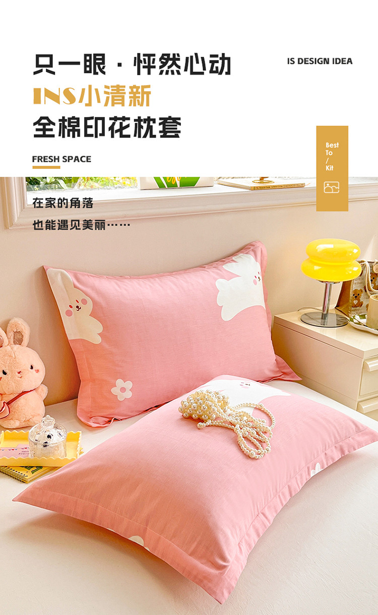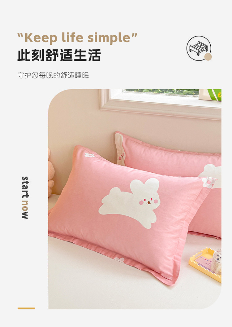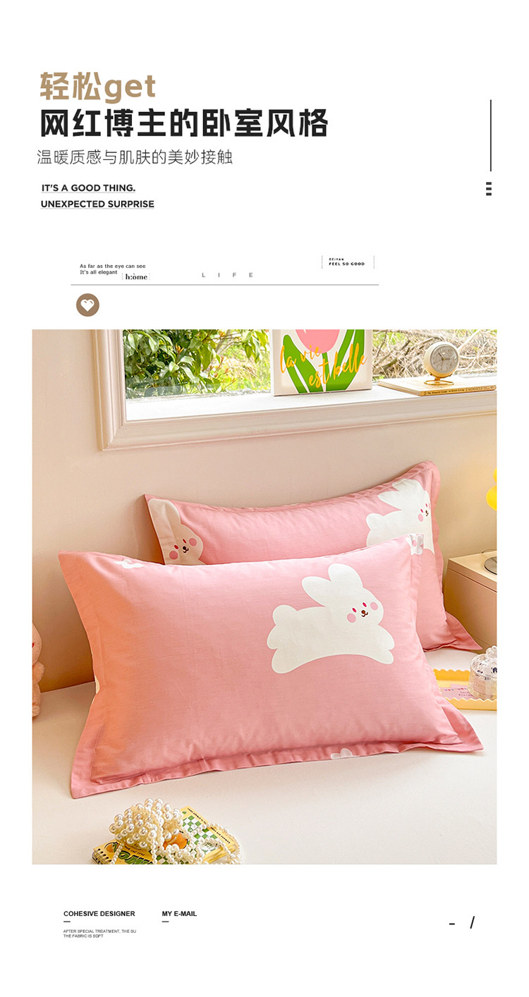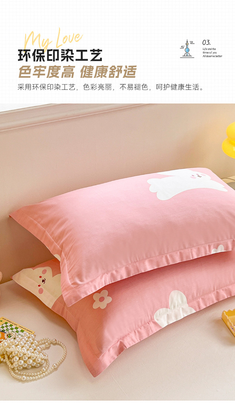 商品名称:绵庭 2023新款全棉印花枕套 萌萌兔-粉
